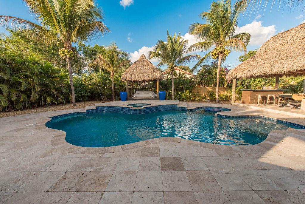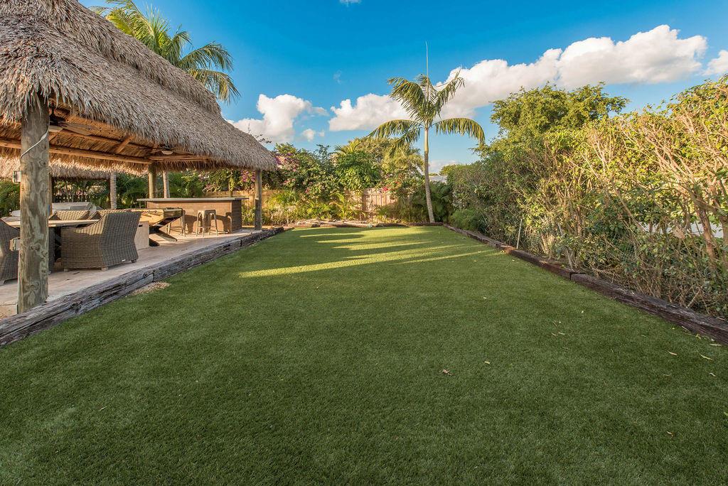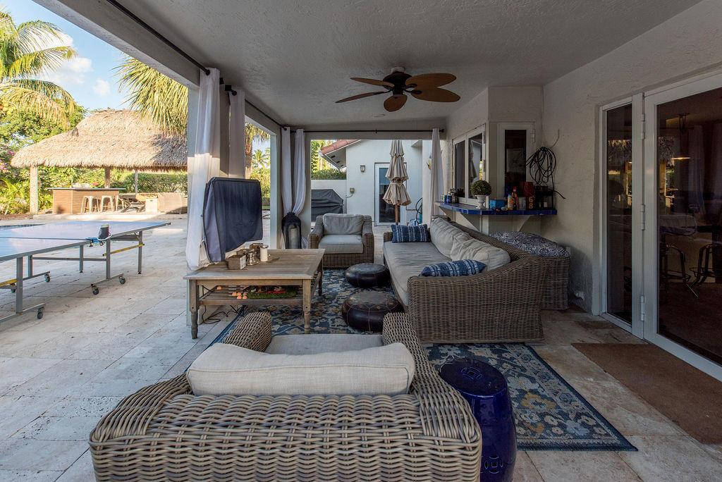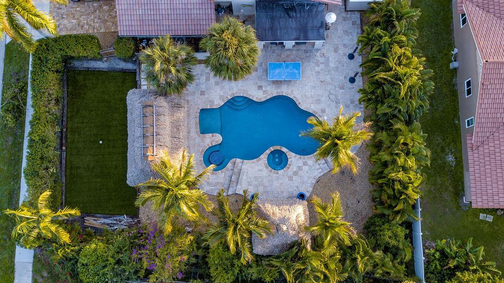 Expansive double corner lot in east Boca with resort like back yard. Two Tiki Huts and a turf sports area surround the custom pool with elevated spa and large deck area. Updated home features complete impact glass, newer concrete tile roof, open floor plan and updated kitchen with stainless appliances. Large master and en suite master bath, vaulted ceilings, plantation shutters and a modern beach vibe. Lush landscaping, location, location, location. Walk to Boca High / Boca Middle.