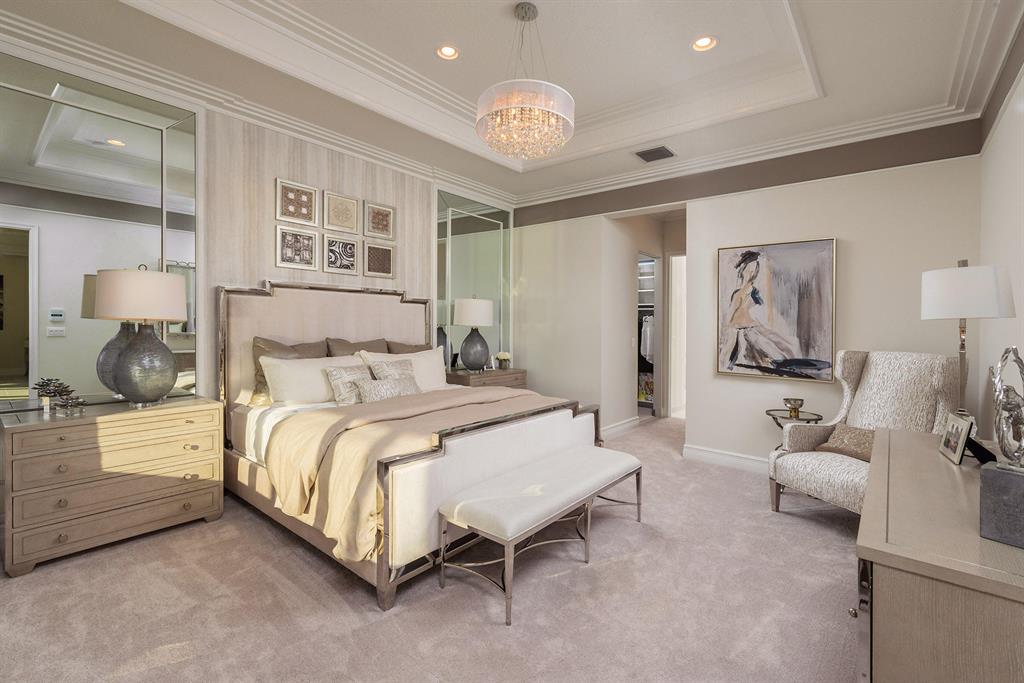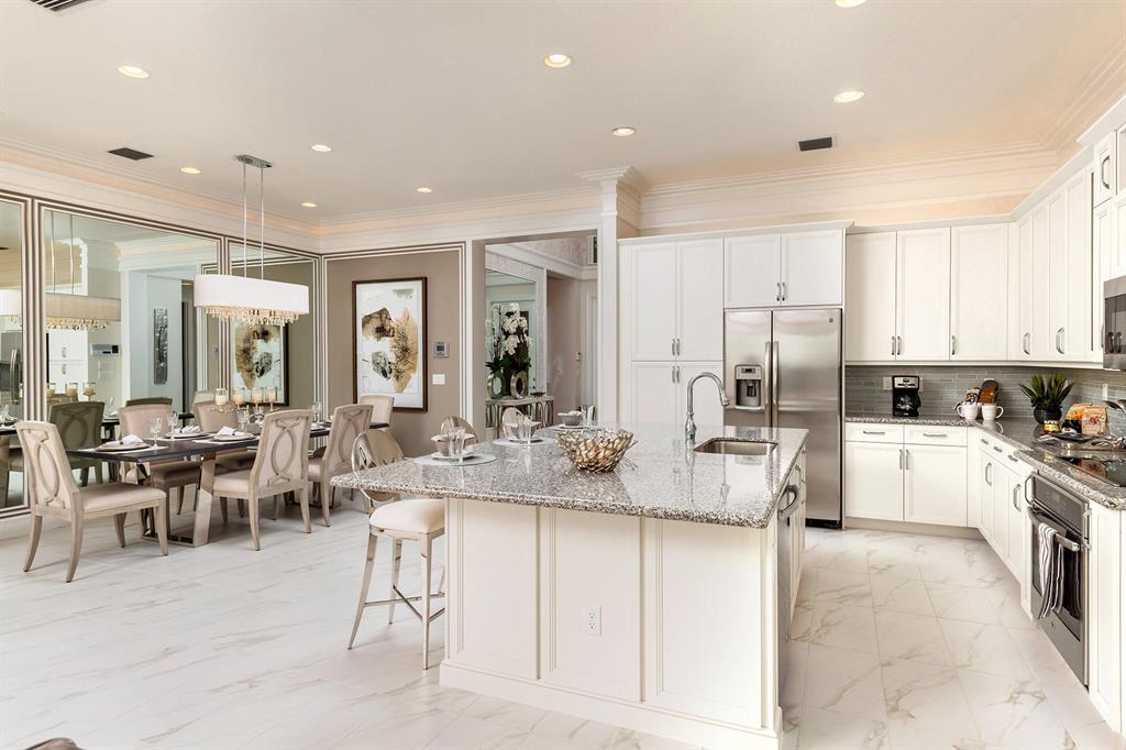 Estate home under construction in Boca Bridges. This quick delivery Vienna Grande Contemporary model is large and modern. The Kitchen includes Upgraded cabinets stacked with an upgraded enhancement package including upper and lower cabinet lighting, upgraded glass doors, finished knee wall quartz countertops, and full staggered tile backsplash. All appliances are stainless steel including a Kitchen-Aid 42'' built-in refrigerator, double oven, microwave, five burner gas cooktop, upgraded chimney hood vented to exterior and dishwasher. In the master bath, the upgraded tile package with shaker white cabinets, upgraded quartz countertops, under-mount skins and 8'' spread Moen faucets make this retreat special. All secondary baths have beautiful wall tile packages, upgraded cabinets with upgrad