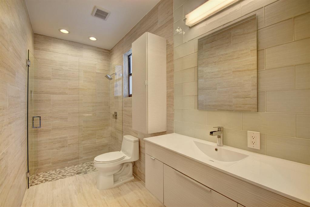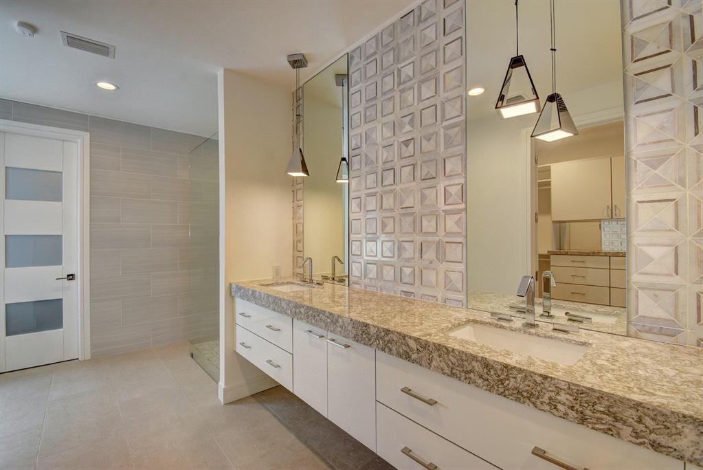 This 4 bdrm, 3 bth home (4th bdrm is an open office) has been completely remodeled with the finest finishes. Enter thru the impressive front doors & the feeling is one of openness with beams of sunlight from floor to ceiling windows. The home is appointed with porcelain flooring. The custom contemporary cabinetry in the kitchen is matched with quartz counter tops, Thermador appliances & beautiful kitchen fixtures. All bathrooms are designed with the latest in cabinetry & fixtures. The spacious master bedroom with sitting area has an elegant master bathroom & a walk out to the pool/patio. The patio is paved in marble & the pool is finished with pebbletech, a sunshelf & multiple water features. The large corner lot allows for a spacious side yard perfect for entertaining or for a play area.