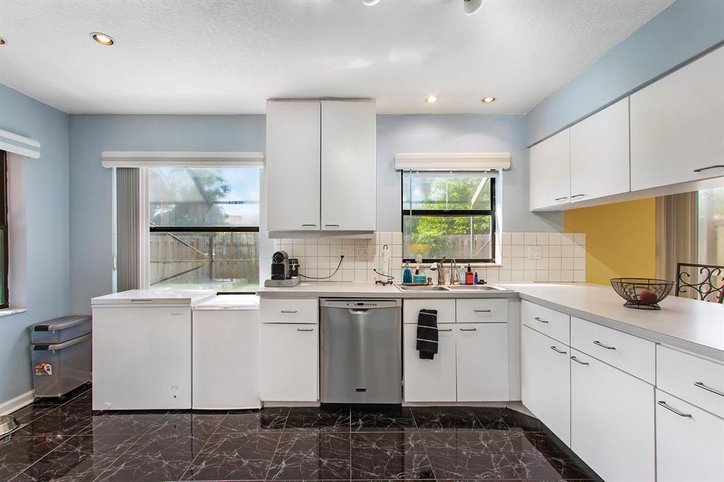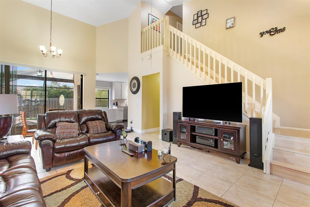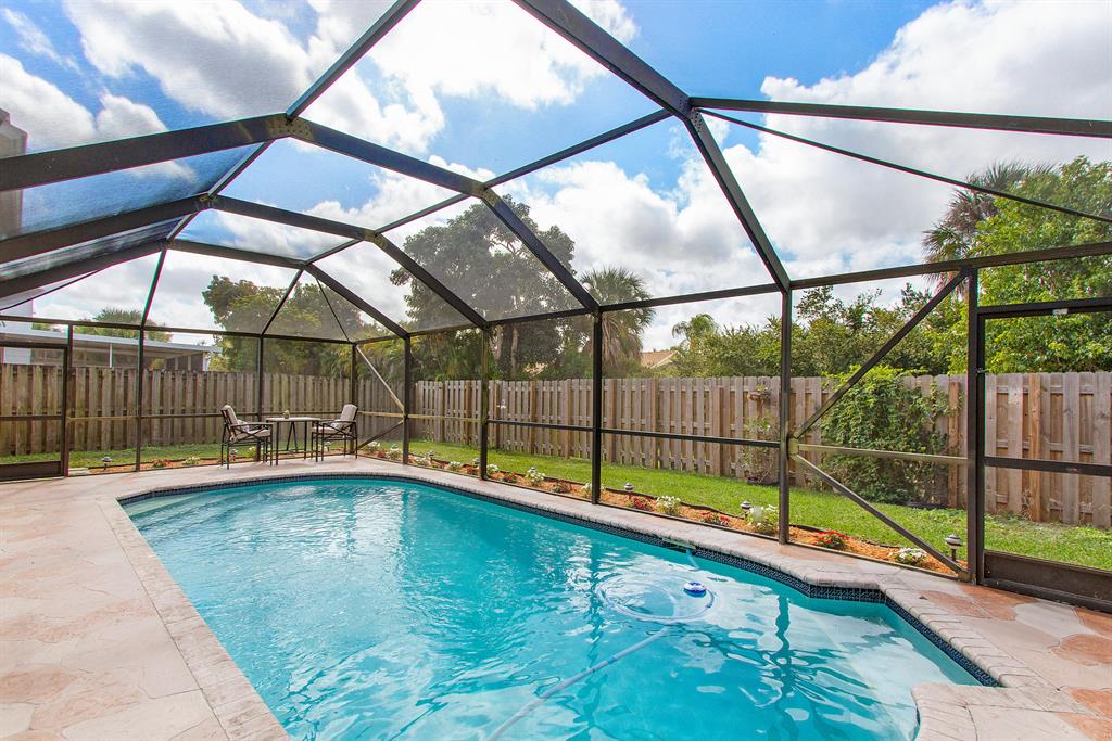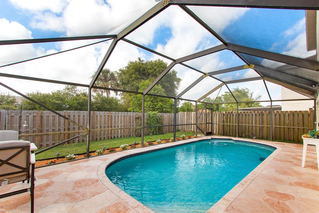 Rarely available 3 bed / 2.5 bath pool home in the centrally located community of Trends within top 'A' Rated Boca Raton school district! This gorgeous open floor plan home showcases sweeping volume ceilings providing a bright and airy feel boasting over 1,800 sq ft of living area, updated kitchen, spacious bedrooms, recessed lighting, newly painted interior featuring modern fresh neutral colors and premium knockdown ceilings. Exterior improvements include newer paint, screened-in pool and custom deck, well manicured fenced in backyard ideal for your family pets, privacy and entertaining outdoors year round!