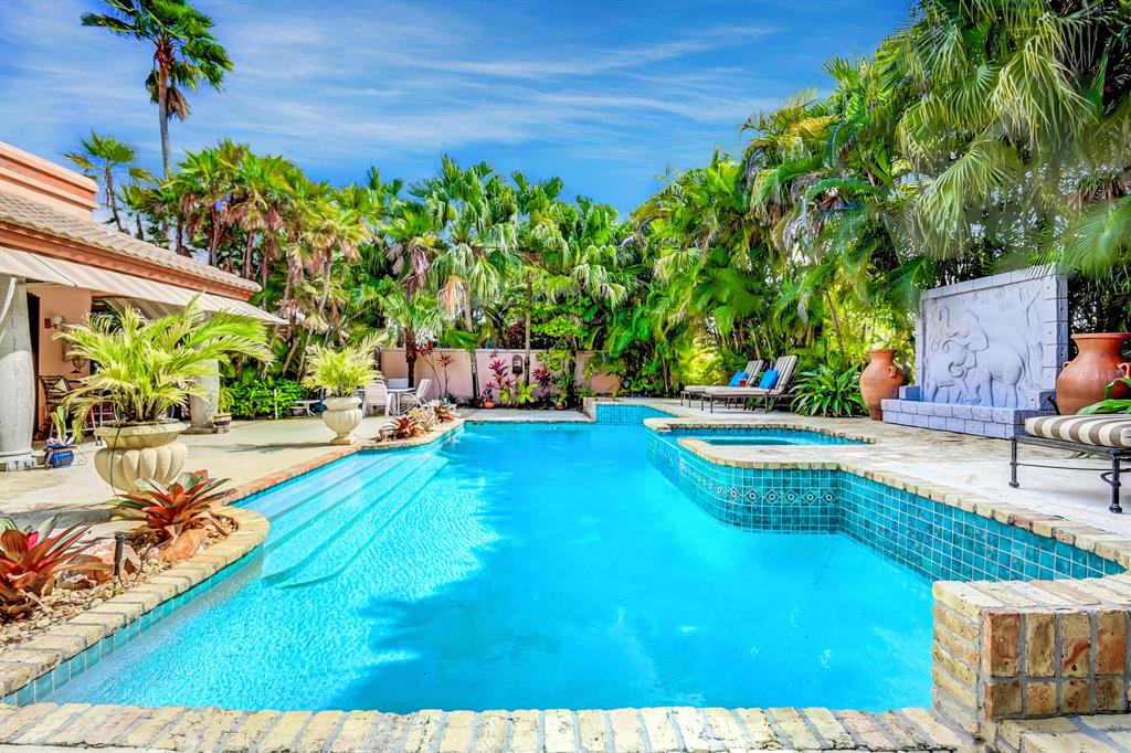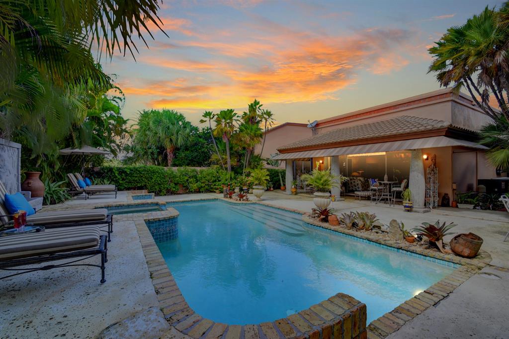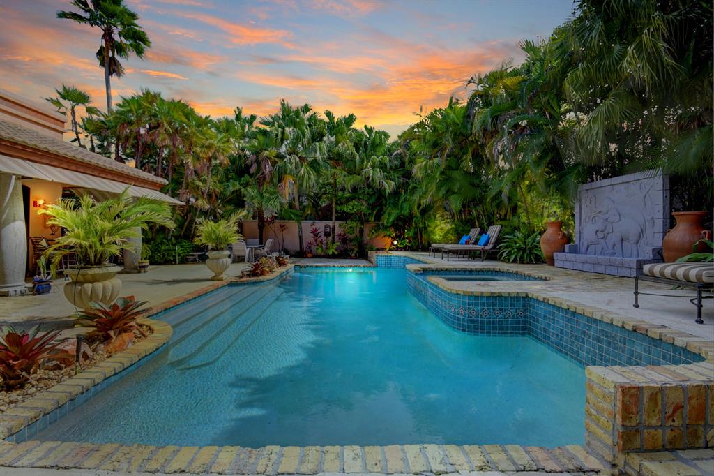 Updated Mediterranean one story single family home in prestigious Villa Flora section of Boca Pointe. This home is unlike and much better than others you have seen before! ''It's all about the enormous heated pool & huge lot!!'' Amazing indoor and over the top outdoor space! Larger than the other lots, this home features a pool that's about double the size of the average pool. Waterfalling from the raised spa, with Chicago Brick pavers around. New roof from 2016 and 500 Gallon gas/propane tank that keeps the generator going for over a week during a hurricane. This very desirable ''Extended Capri'' model w/3 bedrooms features soaring ceilings, spacious open floor plan, fabulous foyer entrance w/sky light, to the clay tile flooring throughout except bedrooms with newer berber carpet