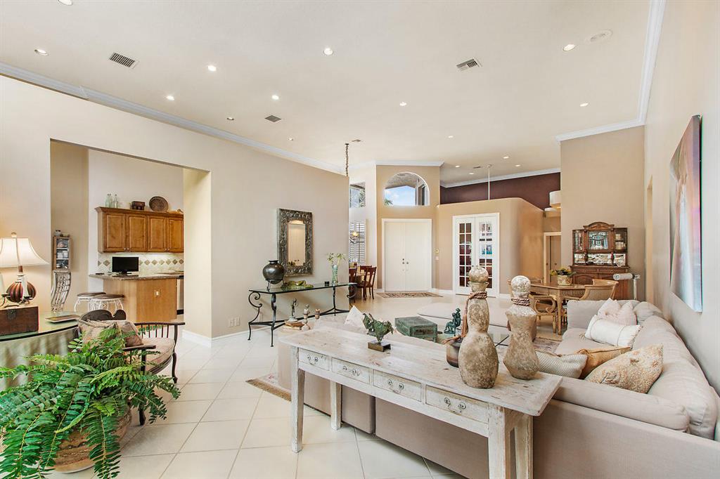 Located on a quiet cul de sac in the enclave of Huntington Park in Polo CC, this one story pool home features an open floor plan, expansive rooms, volume ceilings, his and her master baths, private den, and plantation shutters. The southern exposure brings sunlight into the updated kitchen that features a surround of windows in the breakfast area.A very private pool and patio make entertaining a breeze.The residence has a classic contemporary feel and the perfect home for South Florida's casual lifestyle.Pool heater not warranted.
