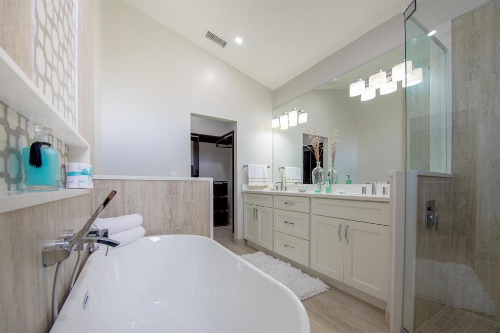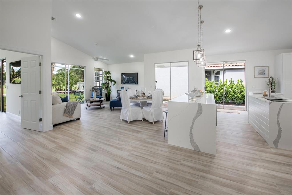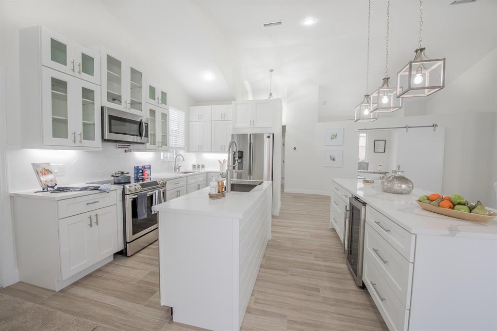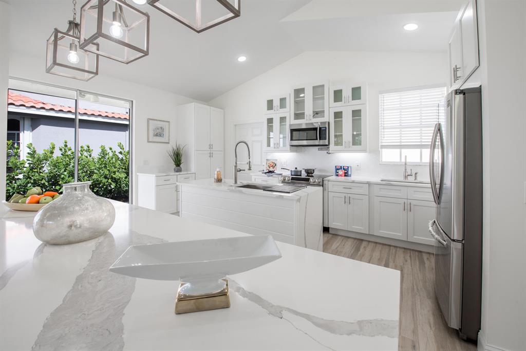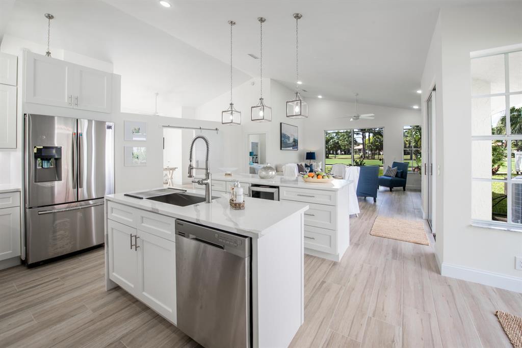 There is no place like home. This house shouts ''designer'' & will reflect the personality & taste of those accustomed to the best of quality design, finishes & lifestyle. Beyond the front doors is a completely remodeled home that features a gorgeous state-of-the-art kitchen that includes a wine cooler, 2 sinks, all new appliances & high ceilings. Notice the beautiful waterfall edges that glide down the sides of the kitchen islands. This sleek and stylish brand new kitchen flows through out the open floor plan which leds to the patio where you can admire the view of the golf course. Freshly painted with a warm & welcoming vibe that is filled with a ton of natural lighting . Step into your large master bedroom & envision yourself soaking in your luxurious & peaceful bathtub. The white