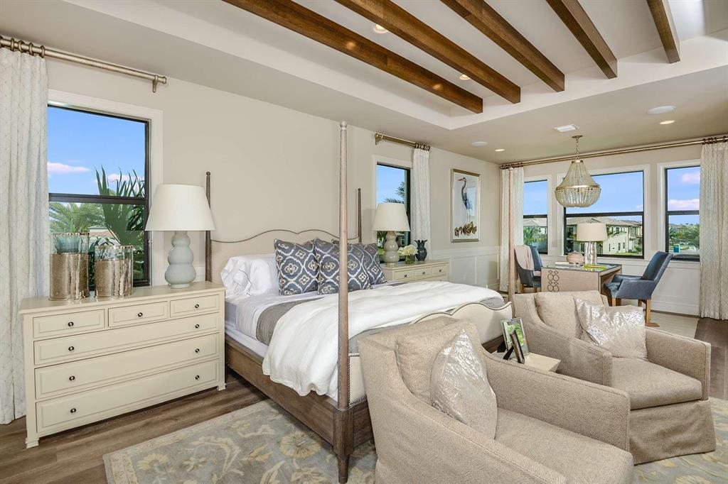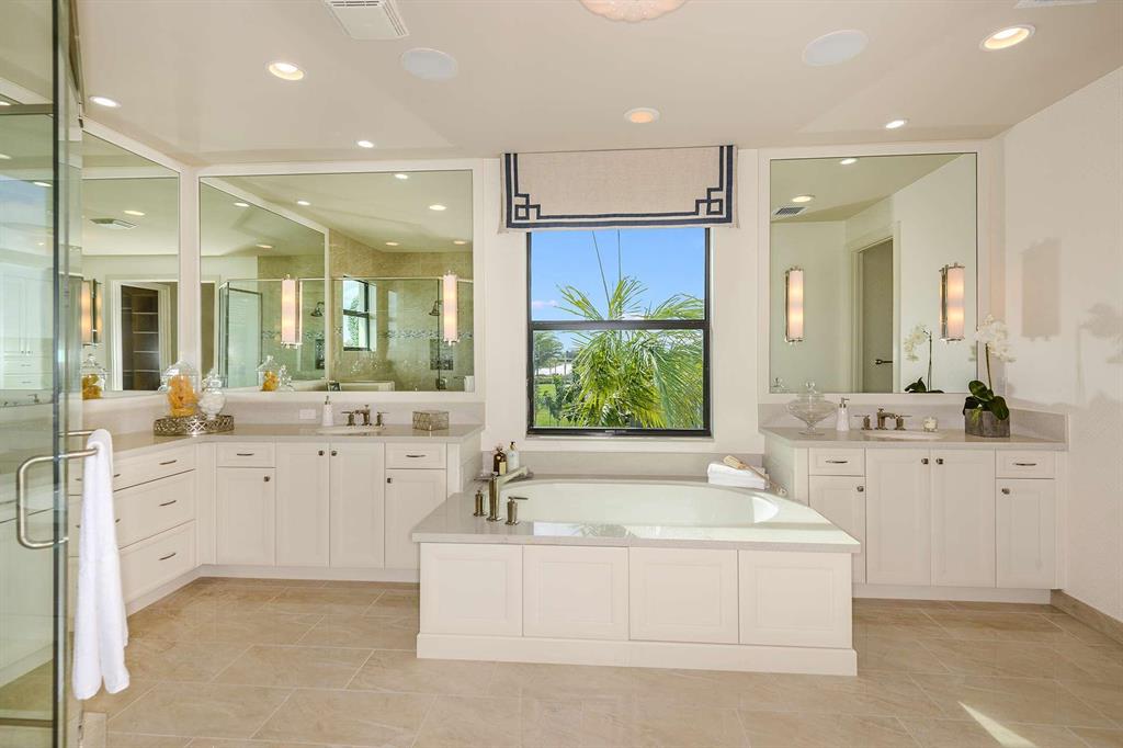 You will be amazed by this stunning Annabelle Contemporary model home located in the brand-new Boca Bridges community. This 5,716 SqFt floor-plan is ideal for entertaining with a formal dining room, great room with a wet bar, Clubroom/ media room and a loft. The eat-in gourmet kitchen is equipped with stacked cabinets, upgraded Quartz countertops, full Quartz backsplash, upper and lower cabinet lighting, stainless steel appliances and a center island. The luxurious master suite boasts a coffered ceiling and his and hers walk-in closets. The opulent master bath with a beautiful 12 x 24 mud set tile wall, upgraded cabinets, Quartz countertops, a soaking tub and walk-in shower. Exceptional outdoor living with a covered patio overlooking a custom pool.
