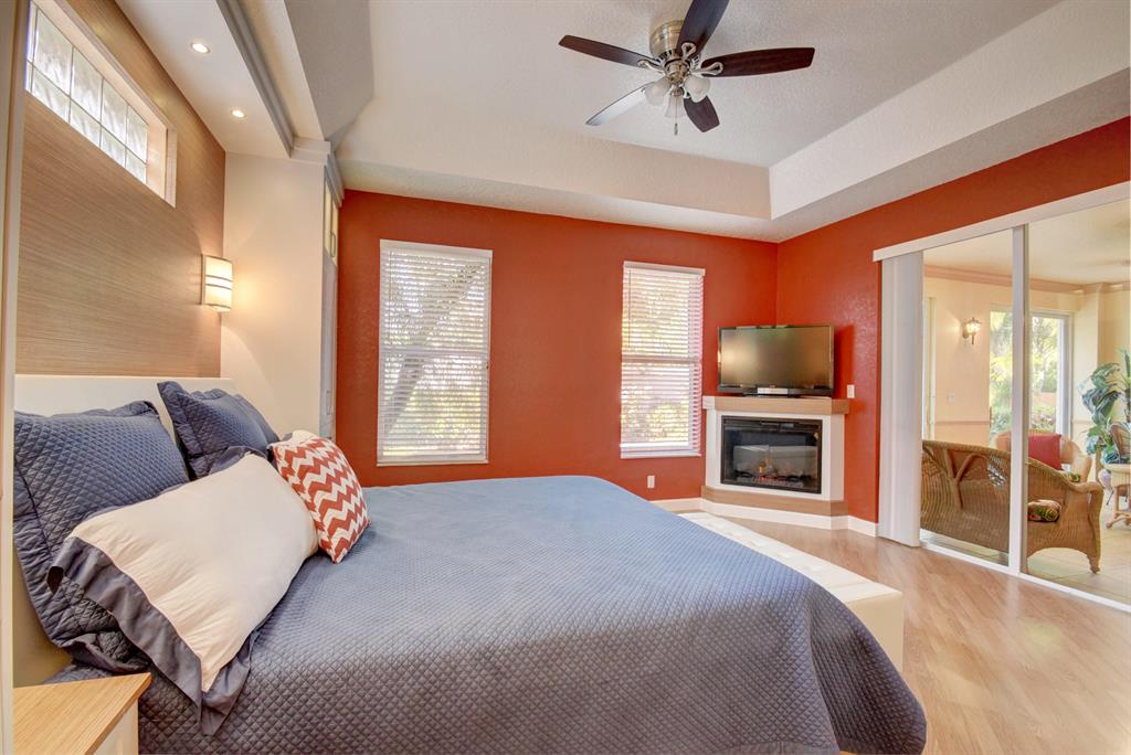 Price reduced for Quick Sale! Great Deal! SPECTACULAR HOME W/ MANY AMAZING UPGRADES & GORGEOUS BUILT-INS THRUOUT. 1ST FLR BOASTS SPACIOUS MASTER BR W/ CHARMING FIREPLACE! Luxurious Master Bath w/ Roman Tub. Custom built-in office w/ exquisite French Doors. Cook's Kitchen w/ Blue Pearl granite & Cafe area. Beautiful Garden/Family Rm w/ hurricane doors & windows. Relax on Spacious Patio w/ Stunning Fountain & Lush Landscaping. 2ND FLR FEATURES 2 bedrooms, full bath, Den/Exercise Room, & impressive Loft w/ high-end cabinetry. Beautiful Wood-Laminate Flooring! Across from Clubhouse & Community Pool! Pet friendly community. Excellent Schools. Convenient to shopping, dining, movies, major thoroughfares. Well-run, friendly gated community w/ low HOA fee, located adjacent to scenic golf course.