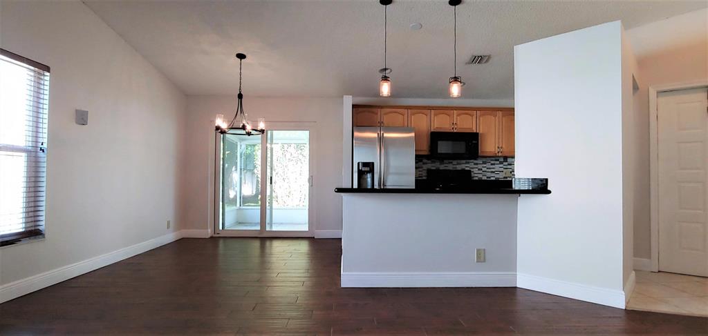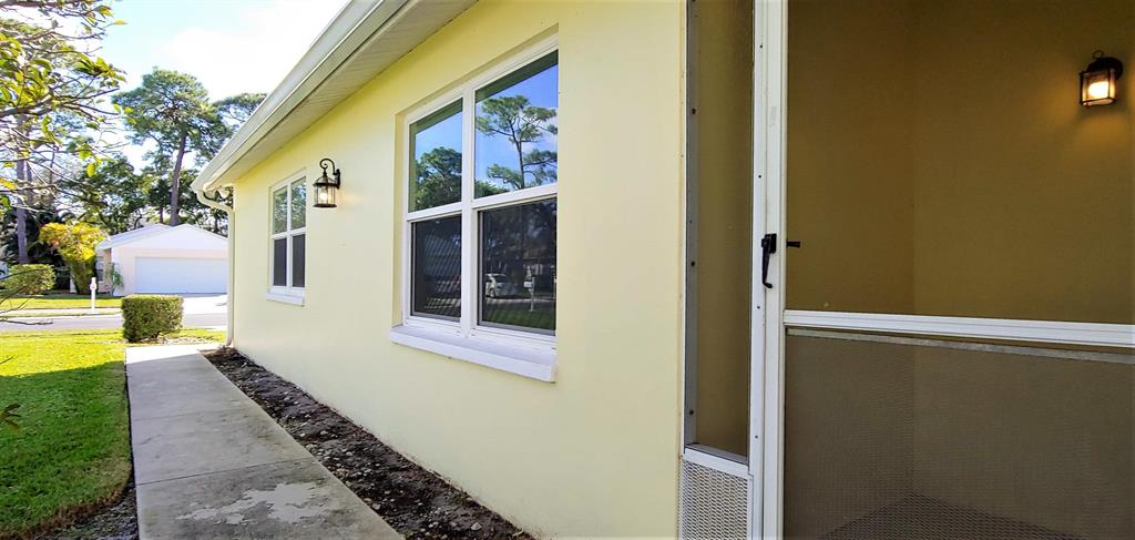 Updated single family home on large corner lot in 24 hour gated community! New impact glass windows and doors throughout! Beautiful new wood-plank tile flooring in living areas including all 3 bedrooms. (No carpet!) Lovely open floor plan with tons of light has spacious kitchen with granite countertops, new stainless steel refrigerator & dishwasher, and mosaic tile backsplash. Freshly painted with new light fixtures and fans. Master bedroom with large walk-in closet adjacent to master bath with new frameless shower door, mirrors and light fixtures. Guest bath also renovated with new tile, remodeled shower, new vanity & light fixtures, mirrors and custom Wainscoting. Extra features include large screened patio, new gutter system, oversized 2 car garage has bonus room (with power & a/c)