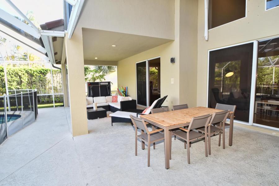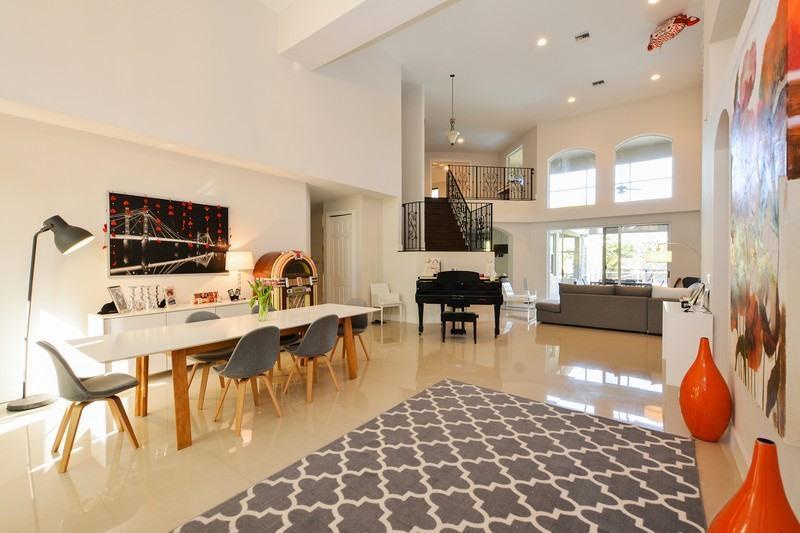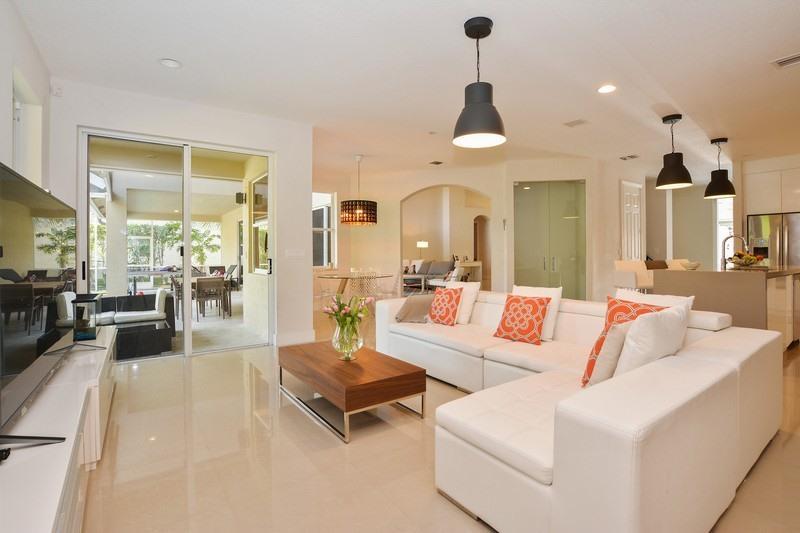 Available for quick closing. Tenant in place until August 6th, 2019 at $5,800/month. Open floor plan home featuring 4,004 sq.ft. living space under air. 5 bedrooms, plus an open loft and a large media room (could be used as a 6th bedroom). All rooms have walk-in closets. 4 full baths plus a half guest bath. Third car garage (single space) has been converted into an office, but can be easily turned back into the garage space. Whole property updated in 2015, contemporary style. New kitchen, floors, bathrooms, appliances. Two A/C units also replaced 3 years ago. Nest thermostats. Large covered and screened-in patio area for entertaining, plus additional private outdoor backyard. Free form pool with waterfall feature and child fence installed. Top rated schools. Gated community. A+ clubhouse.