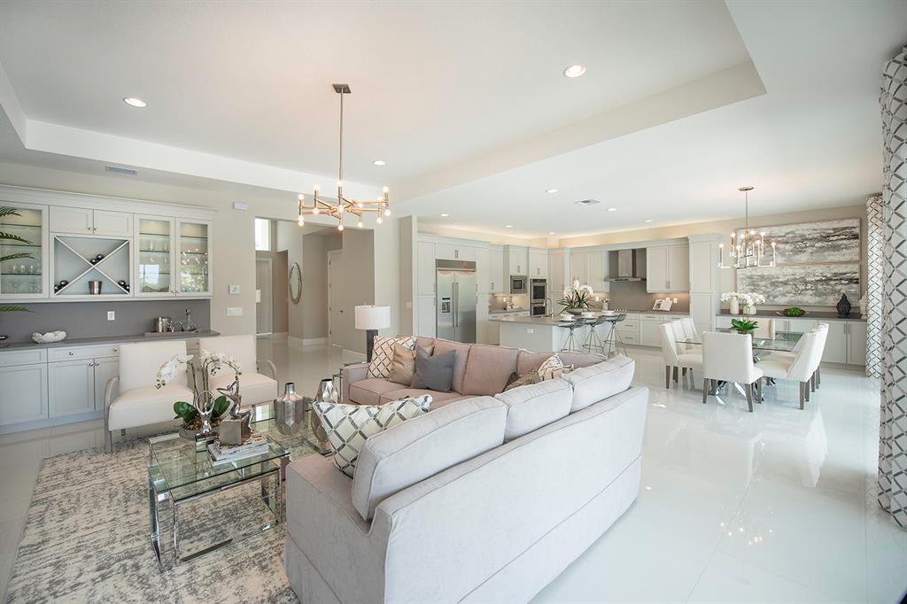 FURNISHED - New Construction with immediate delivery. Impact Glass Windows and Doors. 24 x 24 porcelain matte white floors throughout living areas and den. Kitchen includes KitchenAid stainless steel appliances, double oven, an upgraded Chimney style hood and more. Master Bath includes beautiful Nuvo Calacatta Gris tile extended to the ceiling in a mudset installation in the shower and main bathroom floor, lunar grey upgraded cabinets, quartz counter tops with oversized framed mirrors. Custom pool with sun shelf tanning bench, heated spa with upgraded Shellstone pavers, Summer Kitchen with 32'' gas grill. Call for full list of upgrades. Note: Video is of model home.