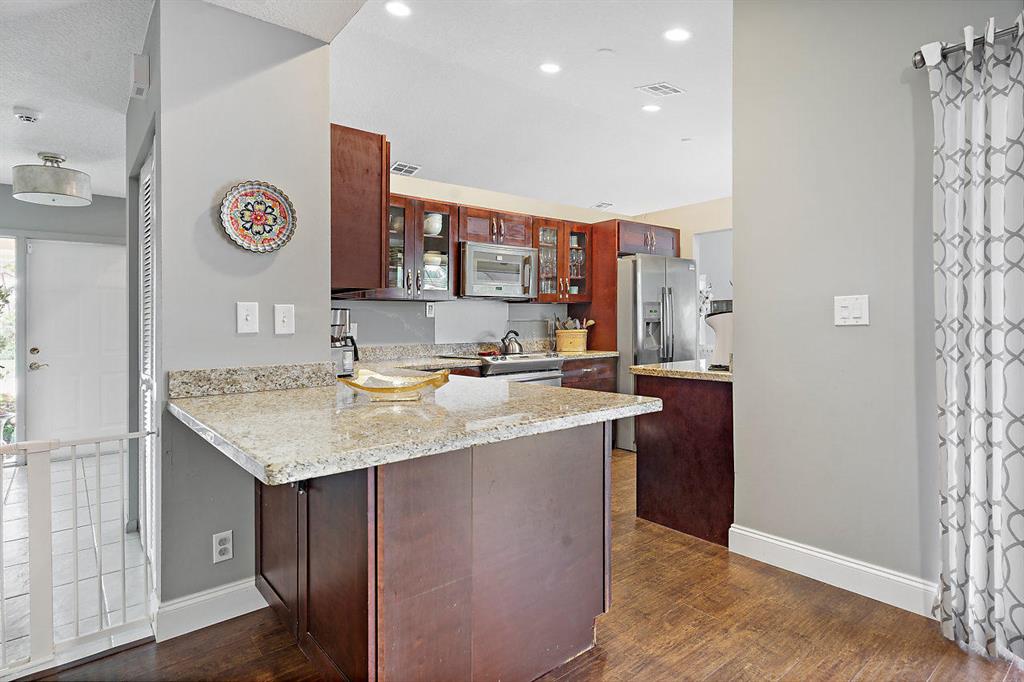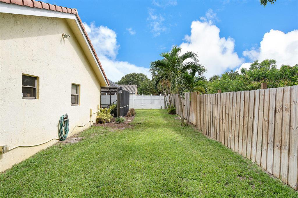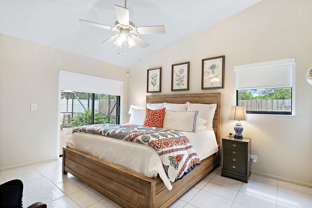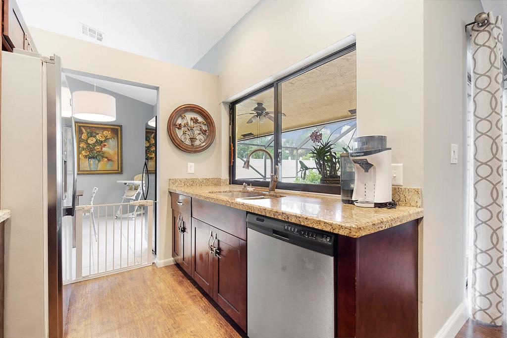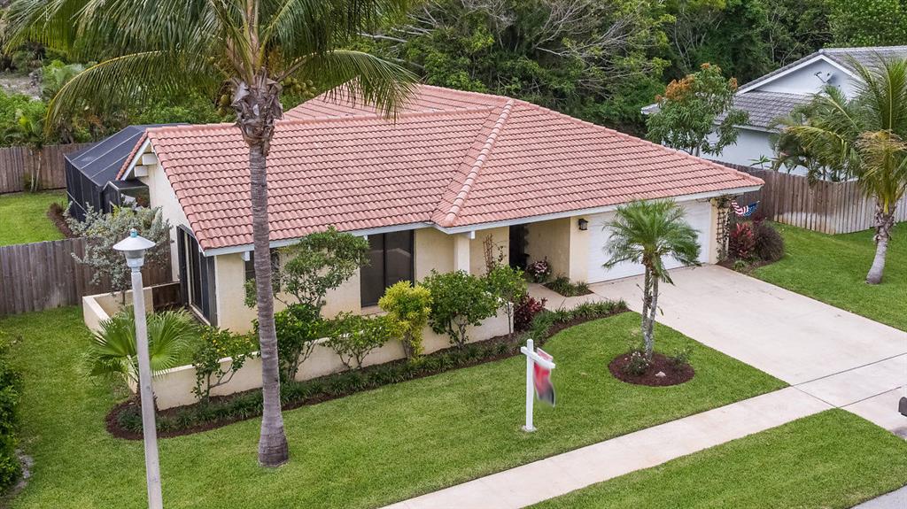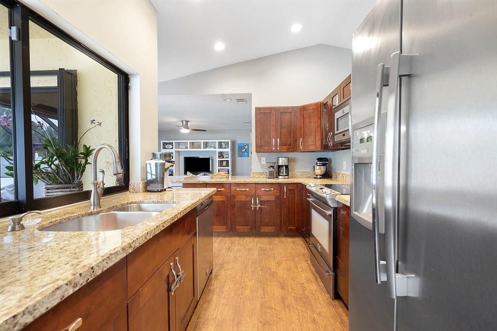 Charming 3-bedroom, 2-bath, move-in ready home nestled in Hidden Lake in East Boca Raton - Updated kitchen, with stainless appliances, expresso wood shaker cabinets, granite counters, vaulted ceilings - Adjacent to kitchen is the perfect family area with lots of natural light, easy-care laminate flooring - The formal living area offers a very flexible use of space with lots of options for furniture arranging - Majority of the home has ceramic tile, vaulted ceilings (no popcorn), newer lighting, fans and custom window treatments - Private bedroom wing including cabana bath - Lots of sliding glass doors out to the expanded screened patio for great outdoor living space and fenced yard - Newer A/C, water heater, upgraded security system, accordion or panel shutters for whole house and garage.