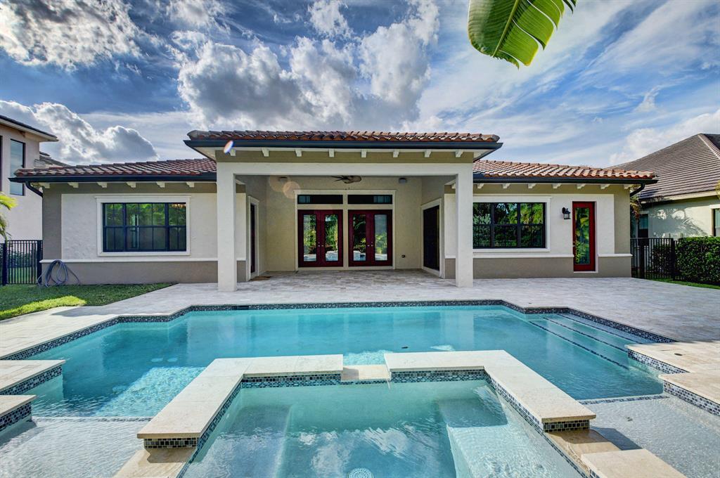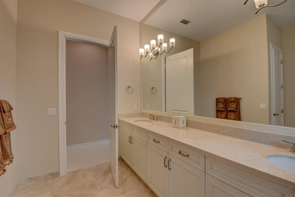 Pristine Stamford model with over one quarter of a million $$$ in upgrades. This 3 bedroom plus club room or convertible 4th bedroom is all on one level. Stellar appointments include 24x24 top quality marble in living areas, hardwood flooring in club room, fabulous great room opening to gourmet designer kitchen with two tone quartz counter-tops, oversized island & beveled subway tile back-splash, plus Wolf & Subzero appliances, crown molding in every room, designer wall & window treatments & lighting, bar with wine refrigerator, impact glass, heated pool & spa, lovely landscaping with grass. Epoxy garage flooring and outfitted storage. Nearly new and never lived in!!!