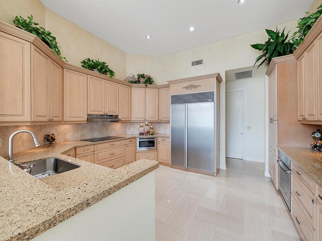 This is a Grand Home with 4 B/R'S + office/library/card room. 5 baths. Amazing South facing views of 9th Fairway & lakes. Many updates including newer kitchen with Sub-Zero Refrigerator. All other appliances Jenn-Aire inc. 5 burner cooktop & in-drawer microwave. Kitchen has soft closing doors/drawers, under cabinet lighting & pull out shelving. Marble floors in main areas. All bedrooms have en-suite baths & walk-in closets. Master bath has separate his/hers water closets. Circular Driveway plus Front entry 3 CAR Garage. All on 1/3 acre lot. CLUB MEMBERSHIP REQUIRED. SIZES/MEASUREMENTS/DATES SUBJ TO VERIF. HOA INC. CABLE/INTERNET/ALARM/24 HR MANNED GATE. 18 HOLE GOLF COURSE, HAR-TRU TENNIS, ON-SITE RESTAURANT/GRILL/BAR/POOL. APPROX $60K ONE TIME UPFRONT & $21,000 PER YR FOR CLUB MEMBERSHIP
