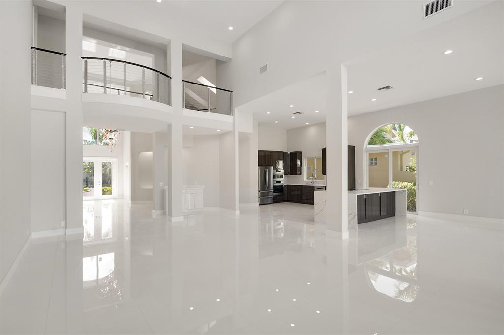 EXPERTLY RENOVATED by Cristian Desata in an exquisite modern design with new roof & new impact windows. Beautiful views of the lake from the pool. 4 bedrooms & 4.5 baths. One of the bedrooms can easily be used as a den or media room. Features include large format Italian porcelain floors, a lush ebony oak staircase with an elegant stainless cable railing. The master bedroom pampers with his & her bathrooms, large free standing soaking tub, a walk-in shower with body jets all in exotic marble. The living room, kitchen & master open to a breathtaking travertine patio/pool overlooking the lake. Elegant European kitchen w/stainless Bosch appliances. Soaring 20' ceilings, a golf cart area,