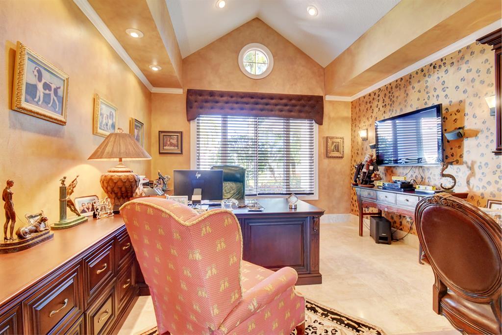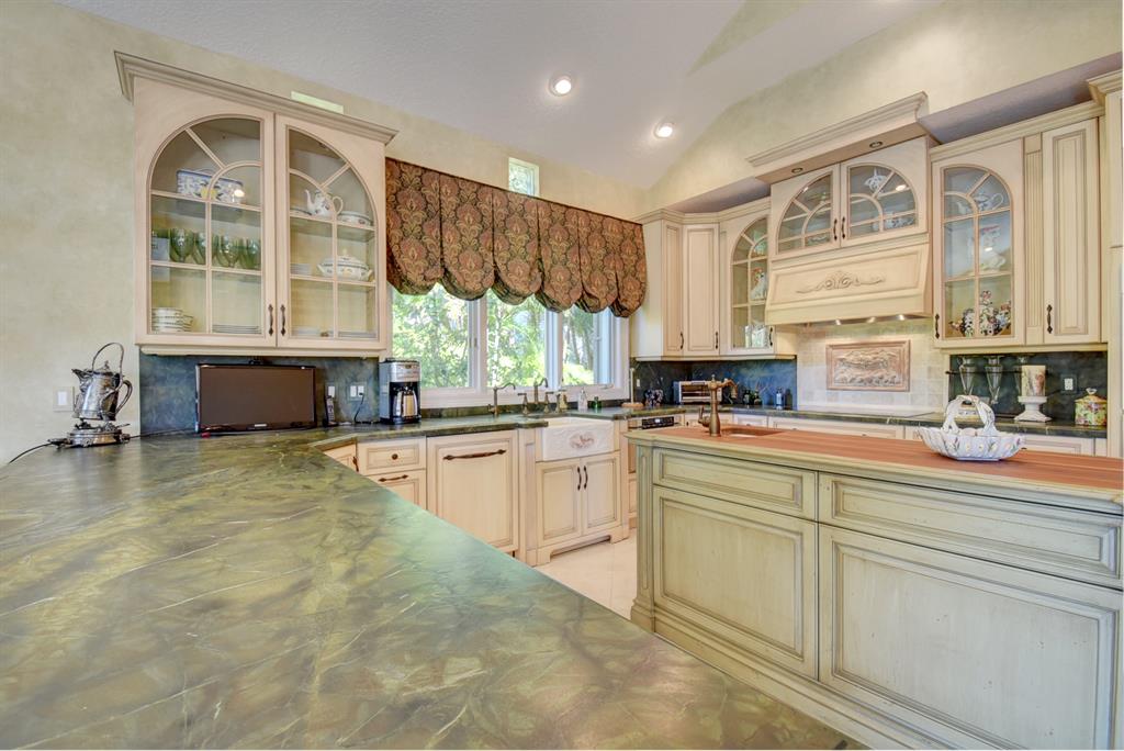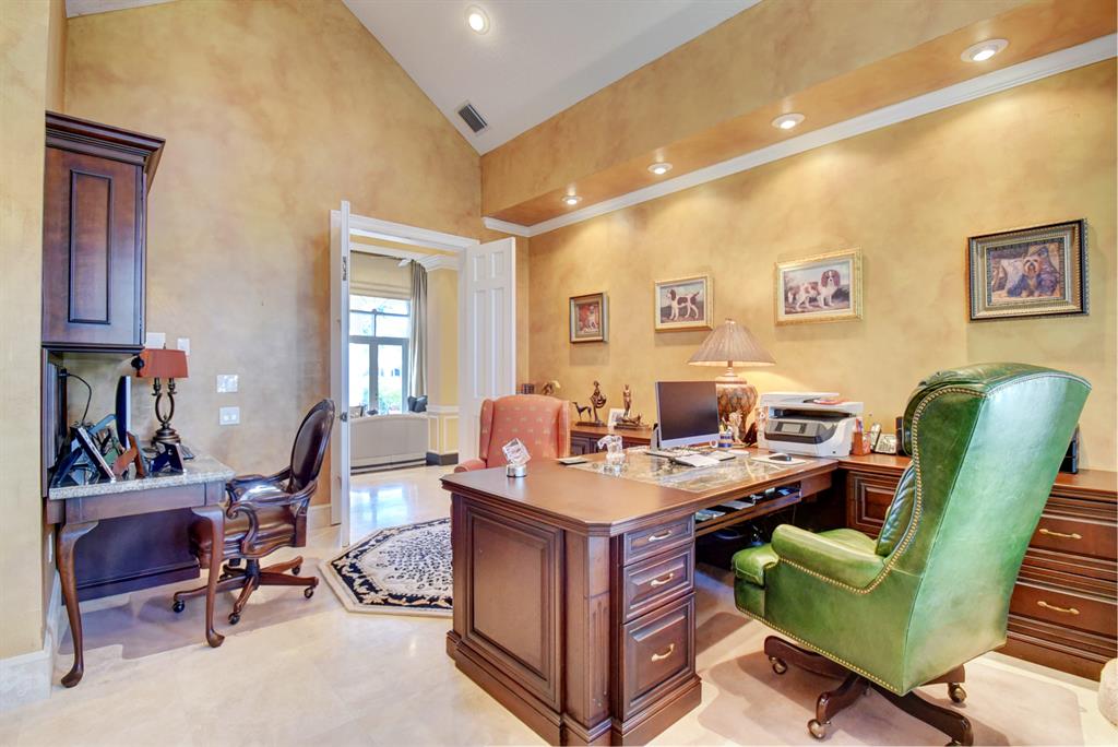 Spectacular Lake Lot on a Quiet Cul-De Sac with Incredible Pool, Garden, Lake and Golf Course Views. No Expense was Spared on this gorgeous Remodeled custom Estate Home. A fabulous New Kitchen, Custom Built-ins thru out, Unbelievable 1st Floor Master Bedrm Suite w/a luxurious master bath, & huge built in closets, a split fl. plan that gives you 2 more first fl. bedrms each with their own baths plus a stunning office, A Second Story Media Room/Movie Theatre, w/a Private Guest Suite, Newer Roof, Electric Accordion Shutters, a 3 Car Garage, an outside summer kitchen & a heated pool and spa are just a few of the reasons this home is a MUST SEE!