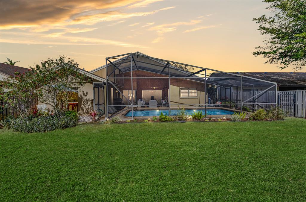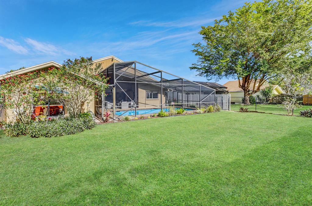 Spacious Updated Pool Home on a Large Lot with 4 bedrooms/2 baths/2 car garage. Fabulous views of the sparkling pool from most rooms! Wow!! Large fenced in backyard. Large covered screened in patio and pool. Great place to enjoy the outdoors, BBQ and throw the ball. Home is open & bright with vaulted ceilings & abundant amount of sliding glass doors & windows for tons of natural light. Open floor plan with laminate wood flooring throughout most of the home, tile flooring in the kitchen and family room. Master bedroom on one side, with a huge walk in closet & private lanai off the bathroom. The other 3 bedrooms on the other side. Family room/living room/dining room!! Vaulted ceilings! Inside laundry room. Great floor plan. 1873 living square feet.