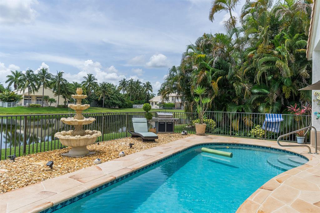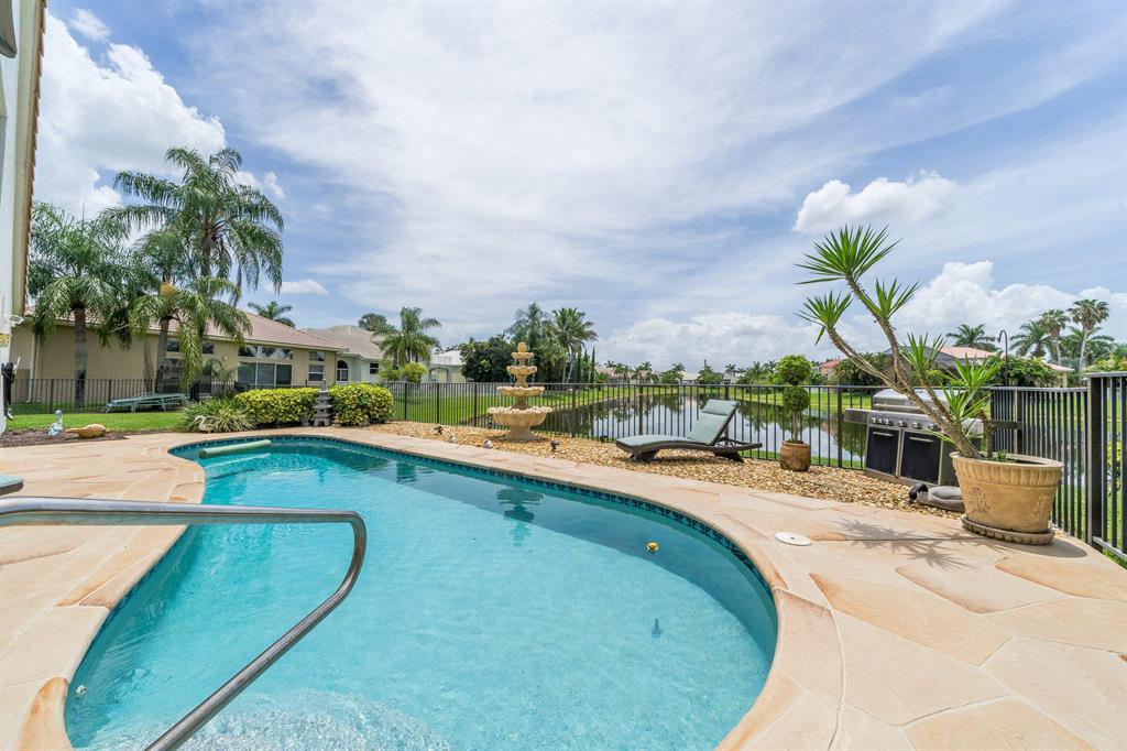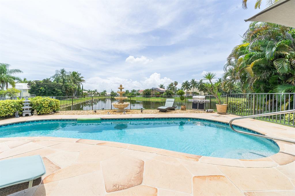 *Contemporary Designer Updates + Lakefront oasis!! 3 direction views-including long lake view*Salt water pool*Covered patio*Fenced-in + very oversized yard.* Open-concept Kitchen-Family Room plus separate living room*Tile in living areas + laminate-bedrooms*Baths: Recently Updated with tile + granite*Recently Updated Kitchen: Contemporary granite+ cabinets + stainless steel appliances*Gorgeous landscaping-curb appeal*Soaring volume ceilings*Multi-million $ Water-Fall-Staffed Community Entrance+Clubhouse+Tennis+Resort Pool+Fiber-To-The-Home-High-Speed-Internet*MUST SEE-One of finest+meticulous Boca Isles homes!