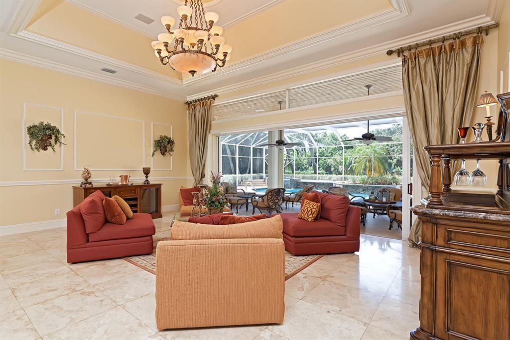 Completely remodeled estate home in transitional decor, 4 bedrooms, plus built-in library, 3 full and 1 half baths. Features include, wood floors, plantation shutters and large closets, Marble through-out main living areas. Master with wood flooring and finished closets. Newly renovated master bath with large walk in shower, over-sized bath tub, and all new vanities and dressing areas. Hurricane protection on all windows and doors, roof replaced in 2010, Screened-in Salt water, heated pool, plus beautiful summer kitchen. All newer appliances including gas stove top, double ovens and dishwasher. Family room with wood burning, stone fireplace and wood floors. All rooms- freshly painted plus new flooring, all updated bathrooms, updated kitchen and appliances.