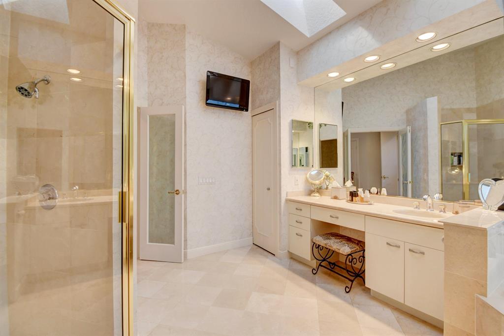 One of the deepest lots in fabulous Fairway Pointe. This highly sought after model has been meticulously cared for by the original owners. This home offers an amazing open floor plan that is splashed with tons of light throughout the day. The dramatic entryway invites you to a formal Living Room adjacent to a full wet bar and a formal Dining Room. The Kitchen, which opens to the Family Room, has been renovated with granite countertops, new stainless steel dishwasher, refrigerator, and microwave. High ceilings punctuate a neutral palate throughout the 3 bedrooms plus office and 3.1 baths. Master bedroom offers custom built his and hers walk-in closets plus his and hers bathrooms. Interior is complete with new drapes, remote control shades, hurricane impact sliding doors, upgraded alarm and