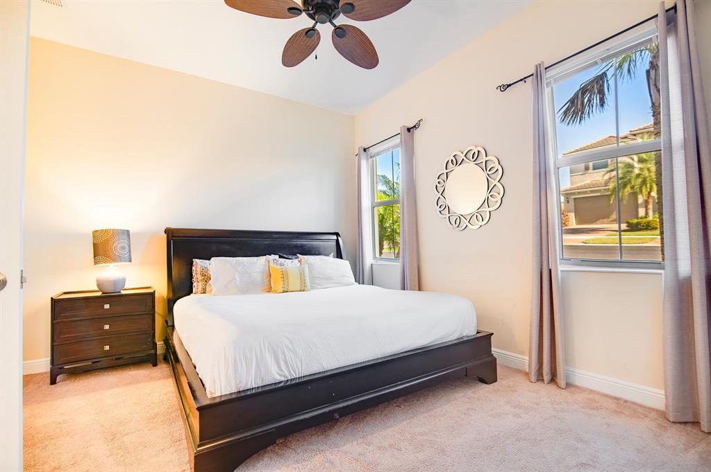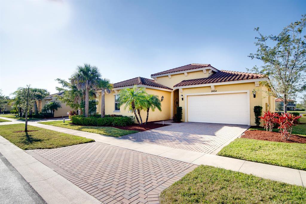 This gorgeous St. Tropez model in the highly regarded Portosol community consists of 5 generously sized bedrooms and 4 full bathrooms. As you enter you are invited in with extended lake views, crown molding, coffered ceilings, and much more. The gourmet eat-in kitchen features granite counters, glass backsplash, stainless steel appliances and offers an open concept feel that flows throughout the home. This home is ideal for family entertainment and includes a water purification system. The formal dining room provides an ideal setting for entertaining with an amazing butler's pantry. Your family will enjoy relaxing panoramic lake views from your extended covered patio great for outside dinners or just enjoying the sunset. Portosol offers resort-style living with great amenities such as: