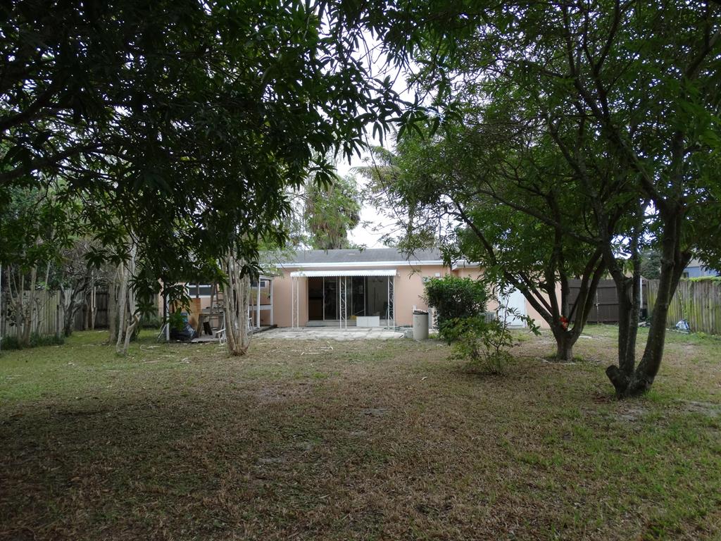 Big house for the money! CBS construction w/ added 4 bedroom/2 full baths; the 4th bedroom can be mother in law with its own front entrance door; upgraded baths; big fenced yard with different kinds of tropical fruit trees; granite kitchen counter tops; has utility shed in the back for storing your lawn mower and garden tools; open patio with covered work shop/dirty kitchen; new water pump and filter system; upgraded bathrooms; no HOA; close to shopping plaza, I-95, banks, grocery store and more. Sold as is.