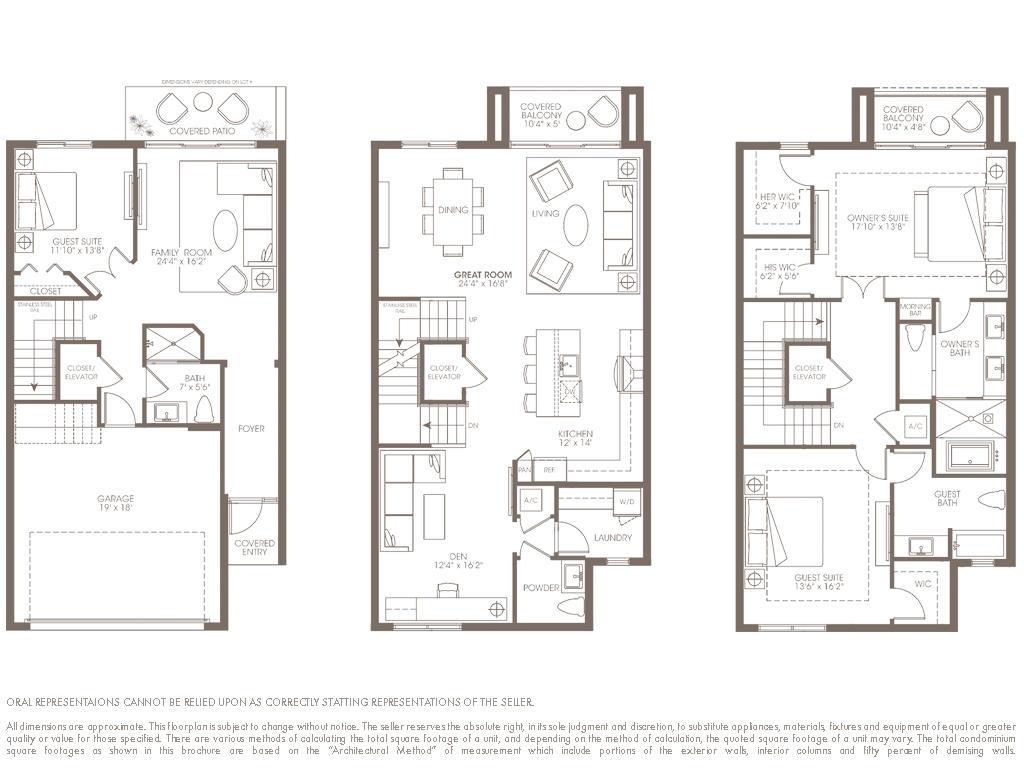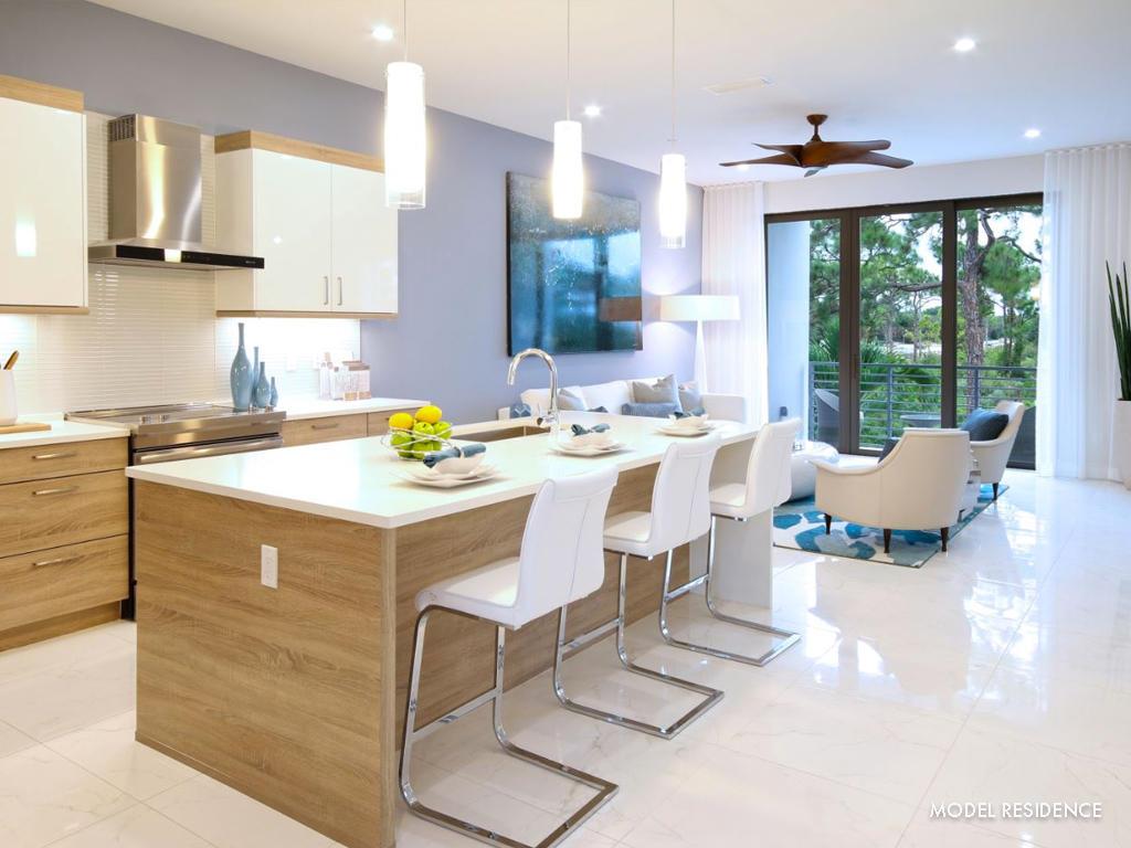 Stunning contemporary architecture in a private community of 75 residences. Our floorplans offer open living areas and flexible spaces on multiple levels. Great room living area promotes a spacious and bright Florida lifestyle with 10 foot ceiling and 9ft sliding doors. Interior finishes offer the latest upscale flooring and European cabinetry. Decorators Unlimited beautifully designed two on-site Models, available for viewing 7 days a week! Plan One offers open living areas and flexible spaces. The kitchen, Dining Room and Great Room create convenient open living while a first-floor hideaway provides an escape that can be converted into a Den or a third Guest Suite. Photos are our staged model.