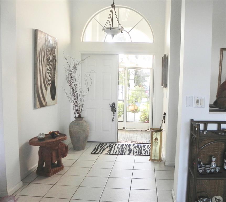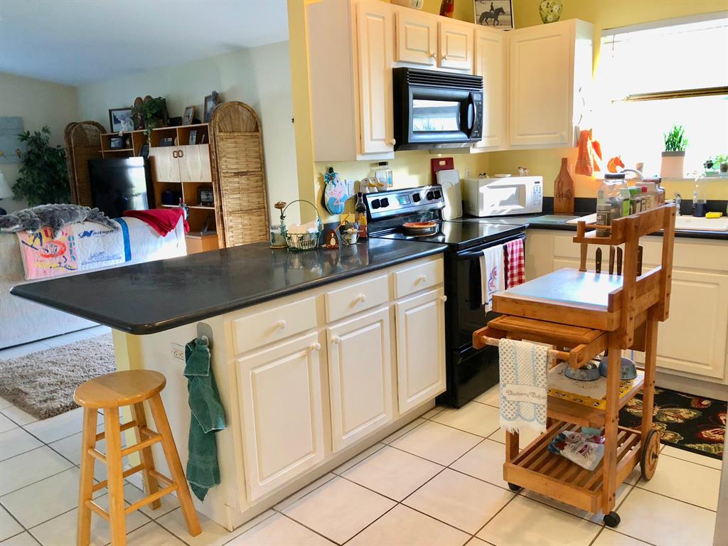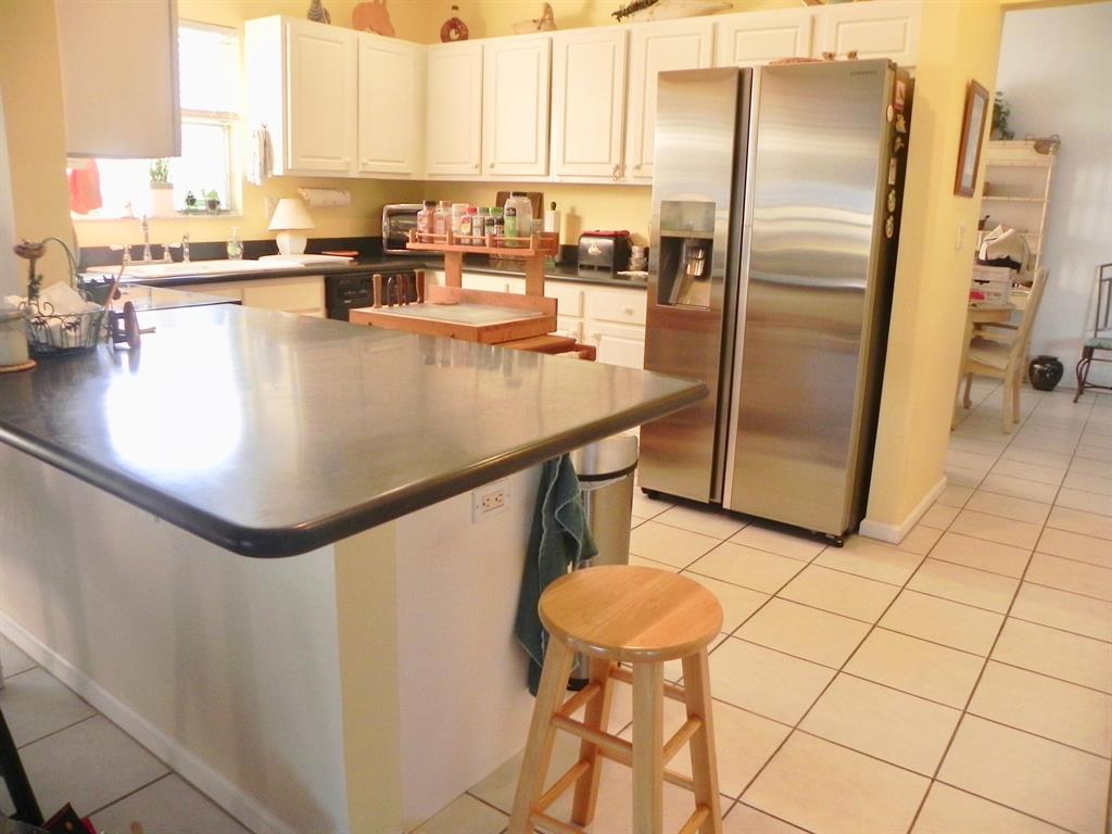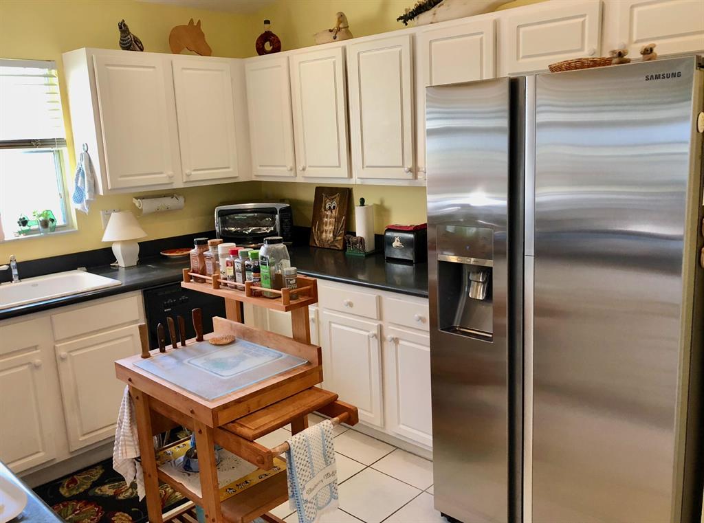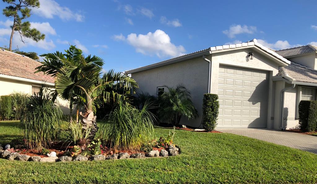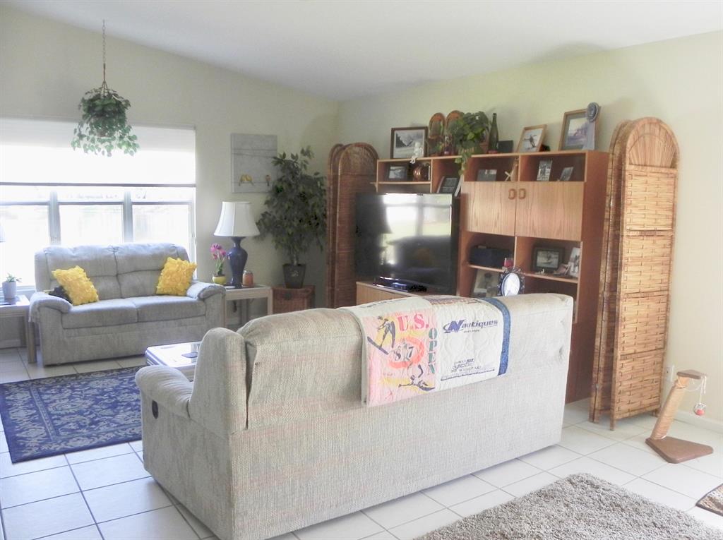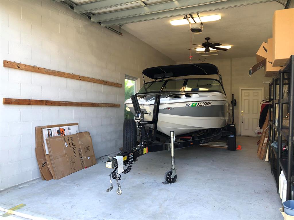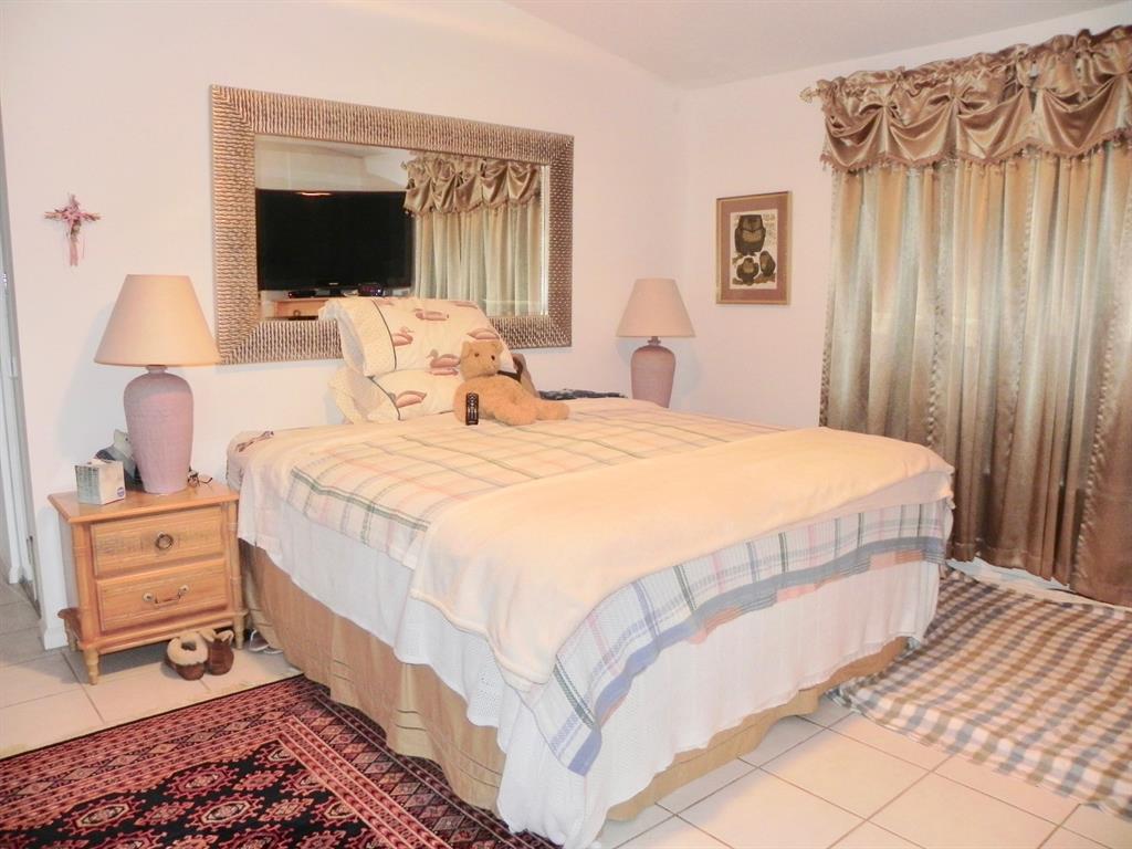 Perfect garage for a boat, RV or cars. Custom designed 30 x 13.3 x 9.3. With this garage you get a lake view 4 bedroom, 2 bath, 2 car garage. Spacious rooms and open floor plan with views of the water from the main living areas and master bedroom. Enjoy the peaceful views of the water from the covered and screed patio. Tile throughout. Newer A/C & water heater. Accordion shutters. Extra garage was designed to fit a boat. Clubhouse, 2 pools, tennis courts, exercise room, billiards and more. HOA fee includes lawn care, cable, phone and internet.