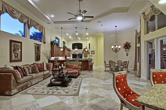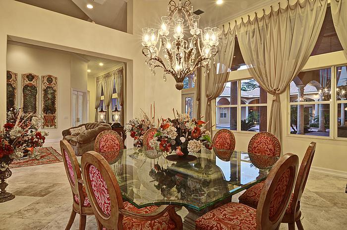 Grand courtyard with over 6170 sq ft of patio area and total living area of 10,457 sq ft. Corner, cul de sac location, double wide porte -cochere plus 4-car side entry garage. 6 Bedrooms and 6.5 baths plus his and hers offices, split bedroom plan with 2nd family room or children's playroom. All bedrooms with private baths. Grand master suite with sitting area and breakfast bar,plus guest house, and outdoor sitting room. Huge kitchen with over-sized center island, and granite counter tops. Marble floors thru-out, extensive architectural detail, High flat ceilings, all 8 ft doors throughout and much more. A must see property that won't disappoint...