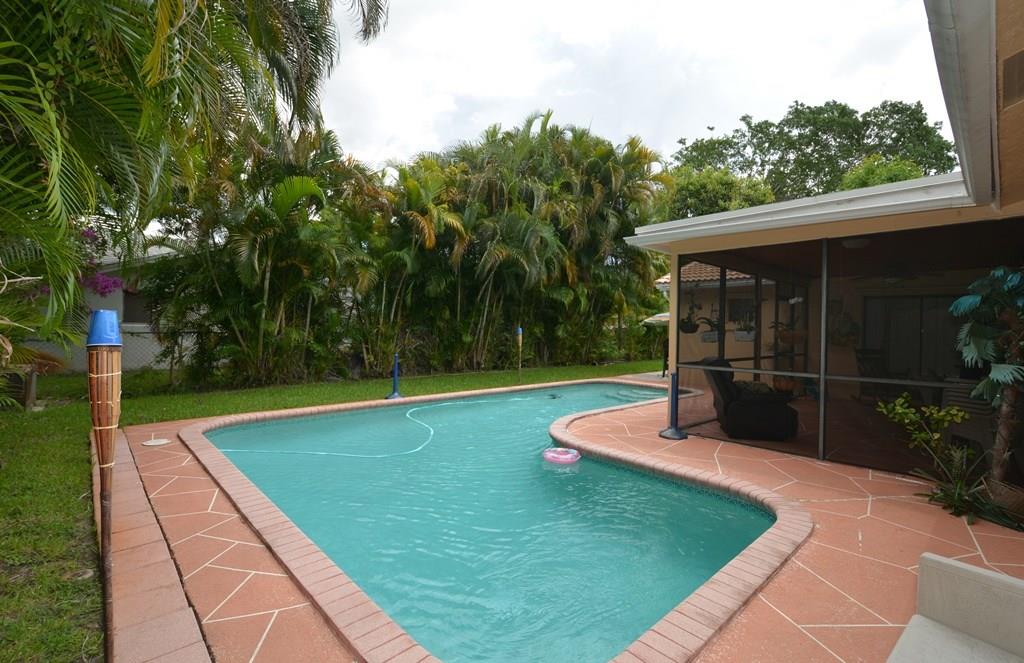 Beautiful 4 Bedroom, 2 Bath Brentwood Village Pool Home in Coral Springs! New Roof & A/C 2015. Formal living room, dining room & family room. Tile floors, crown molding & designer ceiling fans. Open & bright kitchen, white cabinets, corrian counters & tile. Both Bathrooms with new wood cabinets, granite counters & fixtures. Master bedroom with laminate wood floors & sliding glass doors to pool area. Screened back patio & pool surrounded by private backyard. Close to shopping, restaurants & schools.