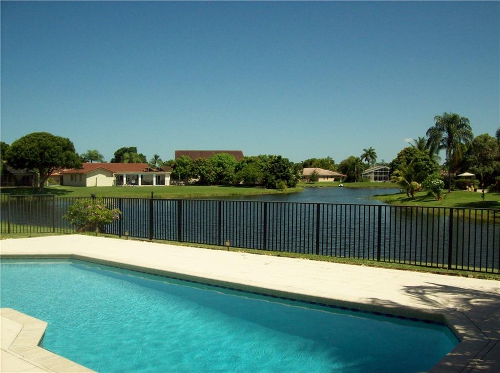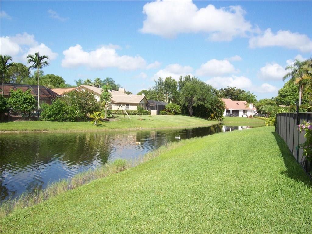 FANTASTIC HARD TO FIND WATER LOT W/ BEAUTIFUL 180 WATER VIEWS! 4 BEDROOM 2.5 BATH POOL HOME IN VERY DESIREABLE COMMUNITY. SPACIOUS OPEN FLOOR PLAN. MANY UPGRADES; NEWER ROOF, GUTTERS, POOL DECK & DIAMOND BRITE. NEWER APPLIANCES. HOME EXTERIOR RECENTLY PAINTED. TILED COUNTERTOPS & WOOD CABINETRY IN KITCHEN & BATHROOMS. HURRICANE SHUTTERS ON ALL WINDOWS & SLIDING GLASS DOORS. HOME IS CLEAN & WELL KEPT. LARGE CIRCULAR DRIVEWAY, FENCED YARD, PROFESS. LANDSCAPED. TOP RATED SCHOOLS. READY TO MOVE RIGHT IN!