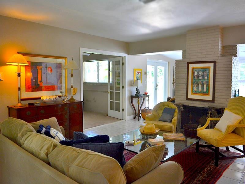 Nestled in lush professional landscaping, this Lauderdale Harbors/Rio Vista Mid-century modern home is across the street from deepwater homes. Walking distance to Southport Raw Bar, and shopping! Impact windows, hurricane rated garage door, brand new airconditioning system and freshly painted. Completely open living/kitchen/dining. Wood burning fireplace, built in bookcases and window seats. Fenced back yard with butterflies galore! A charming home, move in ready. Lowest per sq ft in the area, by far!