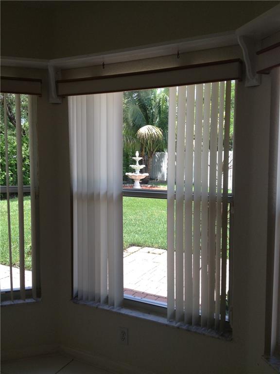 BEAUTIFUL BRIGHT AND AIRY 3/2 WITH VAULTED CEILINGS AND OPEN FLOOR PLAN . KITCHEN FEATURES GRANITE COUNTERTOPS, WOOD CABINETS AND BREAKFAST AREA. LOVELY WHITE TILES THROUGHOUT EXCEPT FOR THE MASTER BEDROOM. MASTER FEATURES WOOD LAMINATE FLOORS AND CALIFORNIA CLOSETS. FRENCH DOORS LEAD TO SCREEN ENCLOSED PATIO AREA IN BACK YARD. LARGE BACKYARD WITH LOTS OF GREENERY AND FENCED IN FOR PRIVACY. EQUIPPED WITH ACCORDIAN HURRICANE SHUTTERS.
