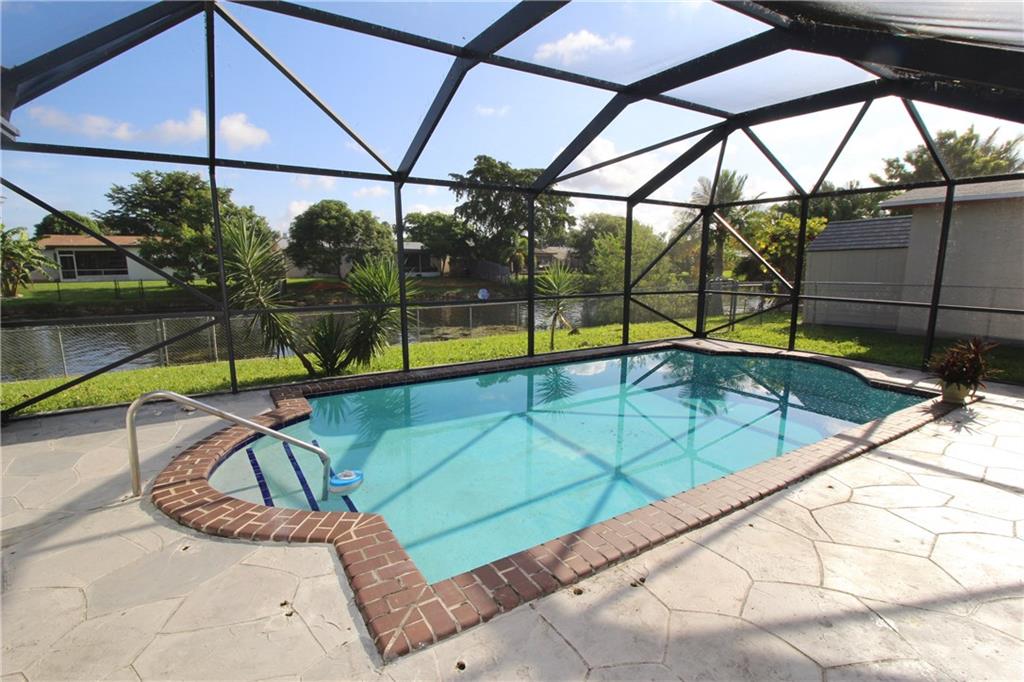 Its a great day to buy this spacious 4bed/2bath waterfront, pool home in sought after West Sunrise. This house features: a split floor plan, new laminate floors in bedrooms, tile through-out living areas, cabana bath, new stamped concrete patio, screened-in patio, large walk-in closet in master bedroom, large shower with dual sinks in master bath, impact windows & lots of storage room. Great location close to shopping & dining, Sawgrass Expressway & Sawgrass Mills Mall minutes away. Hurry this won't last!