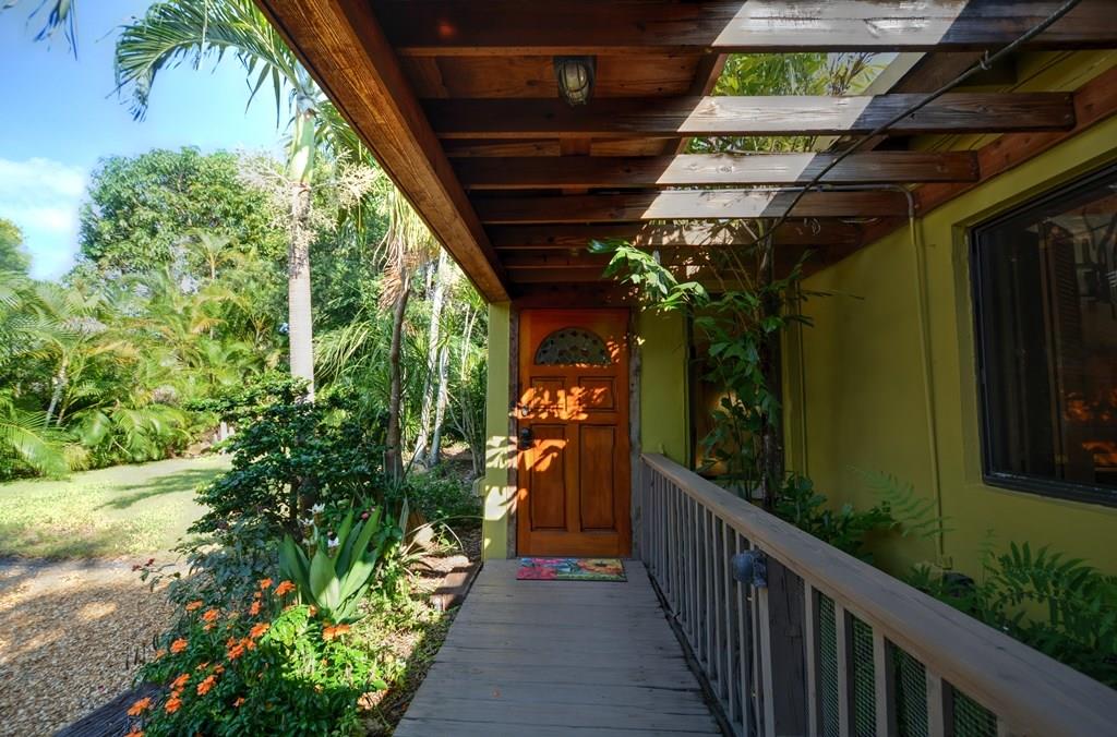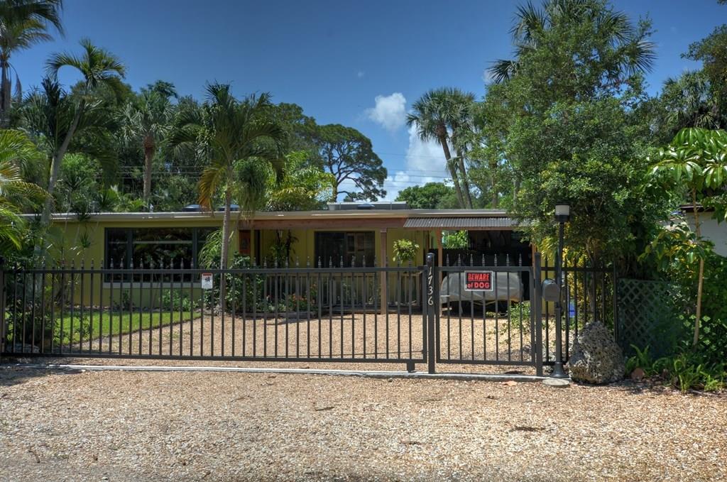 Red Hot Shady Banks! 2 spacious beds and 2.5 baths. Large den w/ .5 bath easily makes 3rd BR. Master w/ his & hers closets, garden shower, sink & water closet; view of private hot tub, swimming pool & yard thru double impact French doors. Built in fish tank, custom storage cabinets. Newer roof, window dressings, & sub zero fridge. Wood burning pass thru fireplace. Refinished wood & terrazzo floors. PGT impact windows, doors & skylights. Automatic gate, turtle pond, covered deck & lush tropical grounds.