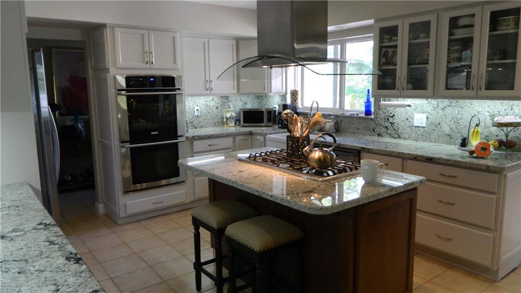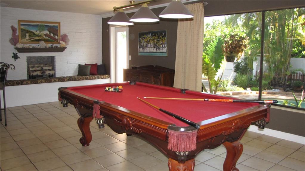 Charming and unique, This spacious home has an open floor plan and is great for entertaining. Oversized kitchen with granite countertop/backsplash, country ceramic sink, double wall oven, gas range. Large bedrooms. Impact windows + shutters for panoramic window facing the pool. Impact glass doors. Built-ins and gas fireplace. 2 A/C's. Alarm system. Tiled in living areas. Laminate flooring in bedrooms. 2-car garage. Saline/chlorinator pool. Tropical feel with mature royal palms.