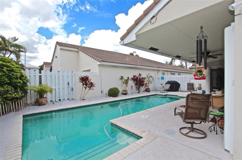 Spacious & open layout in this hidden gem, a 3 bedroom 2 bath home. Clean & easy to show! Great layout featuring an open kitchen with breakfast bar, updated bathrooms, double vanity in master bath, new ceiling fans, engineered hard wood floors (with proper install.) Fantastic outdoor living space with a large pool & plenty of deck space for entertaining pool parties & bbq's! Accordion hurricane shutters for all windows.
