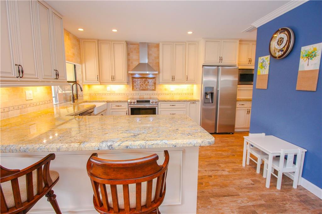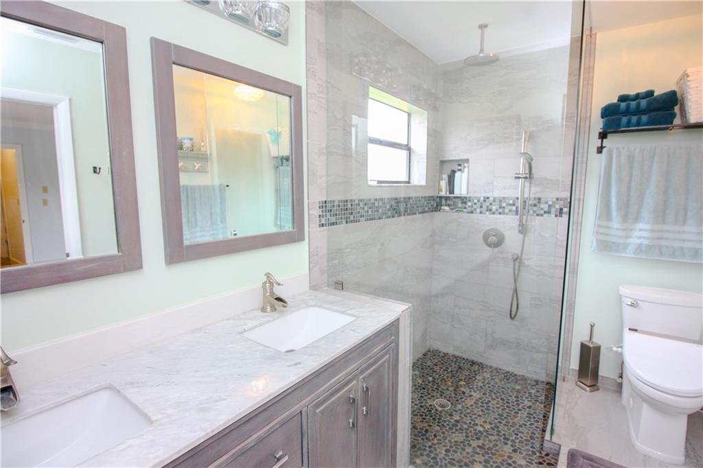 Look No Further, The Hunt is Over! Everything you ever wanted in a home. Updated wood tile floors throughout. Gorgeous gourmet custom glazed wood kitchen with granite counter tops and stainless steel appliances. Wet bar. Huge yard with over-sized travertine marble pool deck. Outdoor kitchen. Updated pool with pebble tech finish & water jets. Remodeled master bath. Cedar wood ceilings in dining & living areas. New front & garage doors. Hurricane accordian shutters. Custom built closets. New Roof.