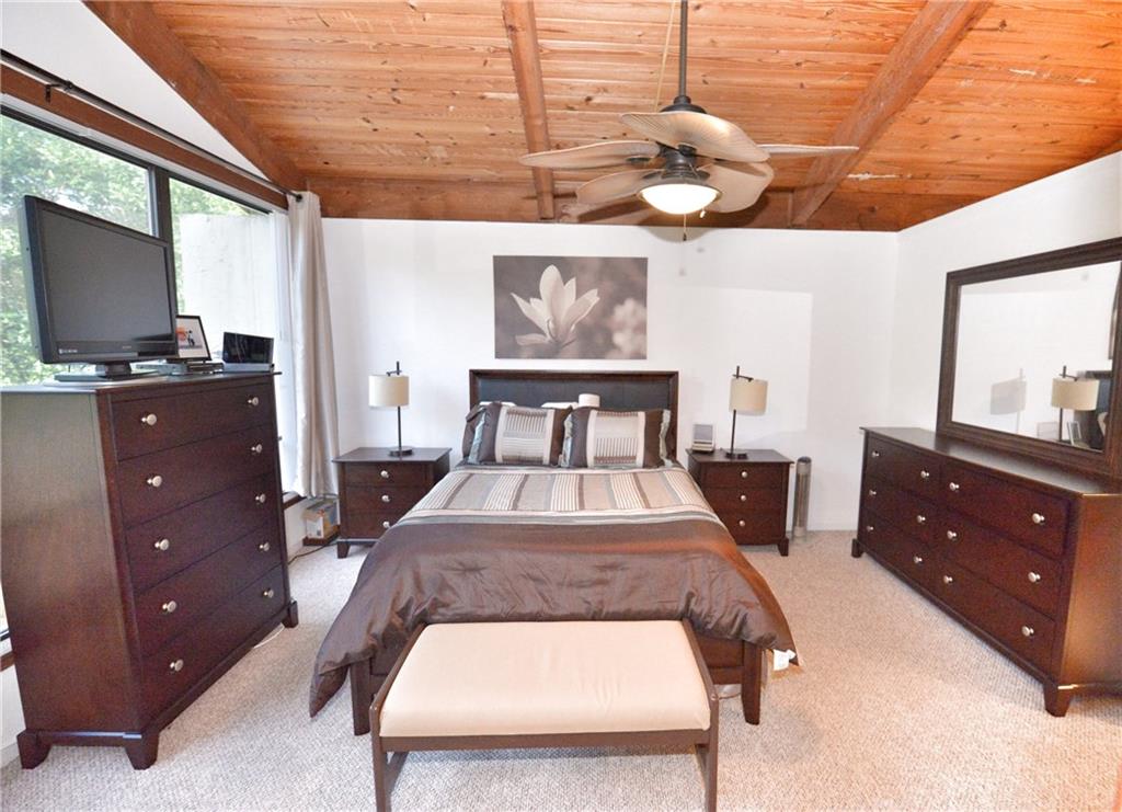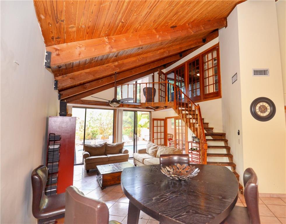 Beautifully updated townhome. Soaring 18 ft wood beam ceilings with walls of glass allowing natural light and nature inside. Kitchen and 2 baths updated. Private brick patio with owners private pool. Living spaces flows into the pool area and tropical setting. Master bath with jacuzzi and bonus loft area office. Club house with heated pool,tennis and racquet ball. Downstairs washer and dryer. Pets welcome. 2 parking spaces in front. HOA fee $65 mo. Wont last. Unique property.