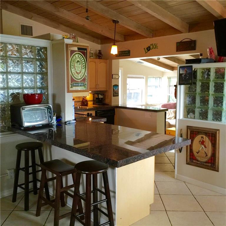 Beautiful Tropical Home. 12,000 sqft Lot w/Fenced Yard. Professionally Landscaped w/ Mature Fruit & Palm Trees. Large Private Driveway w/space for Boat or RV. Boat Landing close by. Open Floor Plan with Wood Beam Vaulted Ceilings. Remodeled Kitchen w/Granite Counter Tops & Extended Breakfast Bar. Enclosed Florida Room, possible 3rd Bedroom or Den. Storage Shed & 2 Patios. New Roof only 2 Yrs old. Don't miss out on this Tropical Paradise in a Prime Location! Close to Beaches, shopping and minutes to I-95.