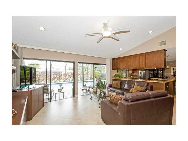 Beautifully maintained 4/2 home situated in cul-de-sac. This home is wonderful for raising a family and/or entertaining. The lush large screened solar heated pool with marble tavertine patio overlooks wide water for maximum privacy. Home updated boasting an eat in granite & stainless steel kitchen overlooking pool area and open to family room. Solar heated water, hurricane shutters/screens. Side fence area perfect for pets. Wonderful family home with terrific schools.