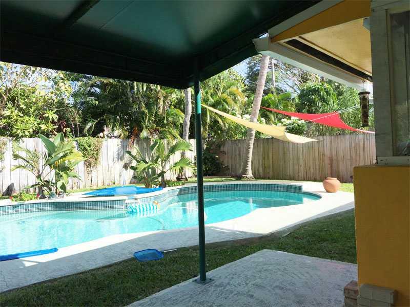 2/2 pool home in much desired Santa Barbara Estates, nicely landscaped front and back, great covered patio, pool with Jacuzzi!Second bathroom is a full cabana bath. MBR with 2 closets, house needs updating, enclosed carport has potential for additional ro om, working fireplace.