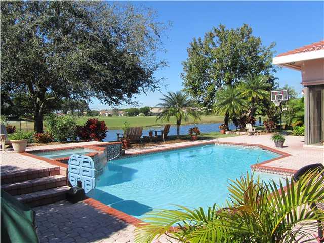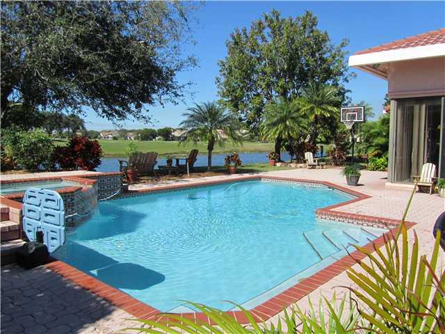 One of the Best Locations in all of Eagle Trace! Spectacular Wide Water and Golf Views overlooking the 5th Green! Enjoy Magnificent Sunsets from the Oversized Patio with Heated Pool/Spa! Separate Screened Patio complete with Summer Kitchen! High Volume 1 2' Ceilings with 8' Sliders open to the Spacious Patio and Pool! New Roof in 2003! Double Sided Fireplace in LR! Neutral colors throughout!