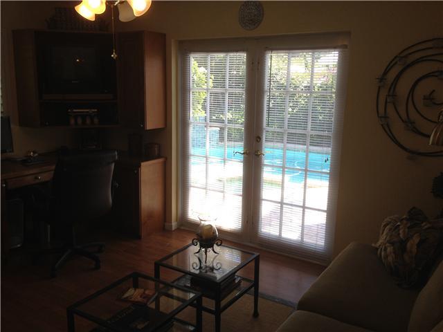 "SHANGRI-LA" Tastefully designed home in quiet and secluded neighborhood. This home is great for entertaining. Foyer entrance leads you to open and bright living room area with sliding doors to beautiful and completely private wooden front deck. Open kit chen with s/s appl. and snack counter/bar. Energy efficient,front load washer & dryer. Updated bathrooms with lots of storage. Office/guest room offers built-ins. French doors to gorgeous cascade-pool/spa area, paved patio and bar w/granite countertop.