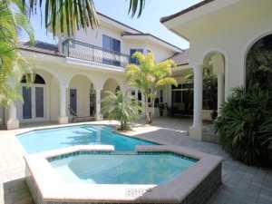 Courtyard home in Royal Palm Yacht & Country Club with 5 bedrooms, 5 full and 1 half bathrooms and 3622sqft under air. Home features gated entry, private guest house, 1st floor master suite with grand master bath and his and her walk-in closets.