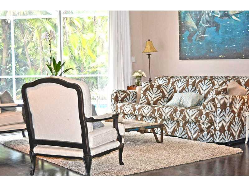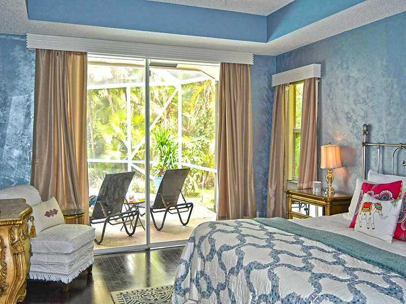 Far off the street on a large private lot, this home exudes tranquility and quality. The kitchen has stone counters and high end stainless appliances including a Viking range and French door fridge, plus wine refrigerator! The floor plan flows beneath vau lted ceilings with hardwood floors. Split bedrooms ensure privacy for the large master suite, open to the pool area. Adjacent to the open kitchen is an airy breakfast room and family room, both overlooking the pool. Boca middle and high schools, A+ rated!