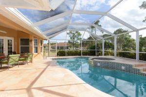This lovely and meticulously maintained 3BR plus den/2 BA ranch home is ready for a quick move in! Features include a new roof, newly-remodeled kitchen with granite, glass tiles, convection oven and pantry pull-outs. Pretty screened-in pool area overlooks your own private pond with separate open sitting area to enjoy the lovely water and lily views! Impact-resistant front doors with attractive paver stones and over-sized driveway give this home wonderful curb appeal. Fully fenced and fully-sodded, the yard is plenty big for a growing family and pets.