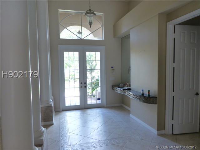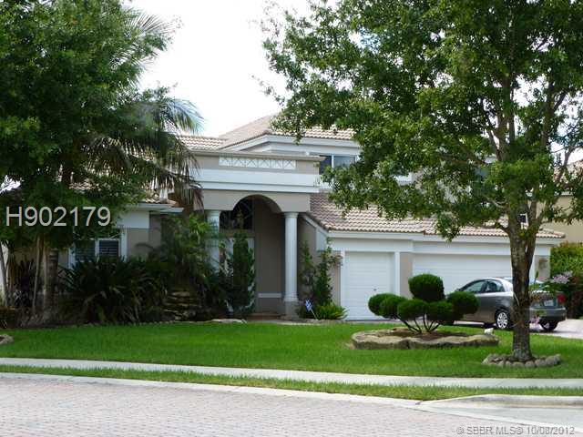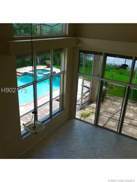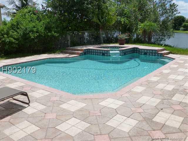 For The Growing Family! Spacious two-story pool & waterfront home in desireable golf community. 2 car garage also has golf cart/motorcycle/storage area.This large executive home is on a quiet cul du sac street, with lakefront privacy. Electric shutters, b uilt in BBQ, separate screened bbq area plus unscreened poool/jacuzzi. Heated pool. High ceilings. Great schools & neighborhood - 24 hour security gate