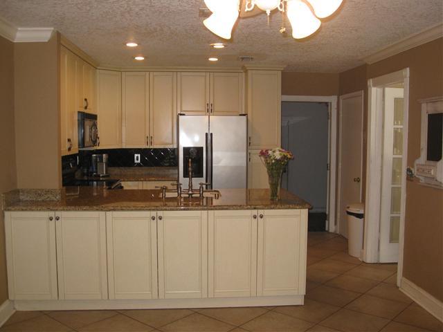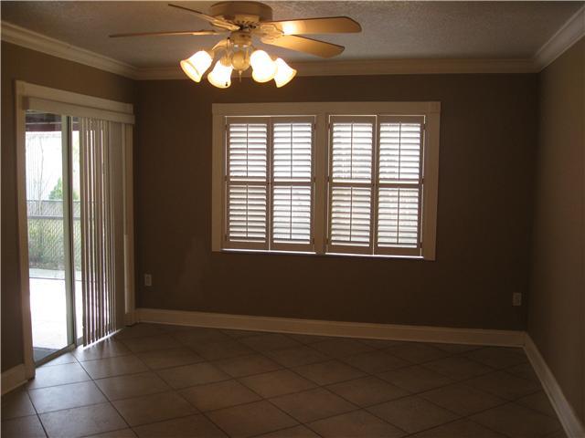 2009 roof, custom cabinets, granite & stainless steel appliances in remodeled kitchen. Upstairs pergo flooring, downstairs stone look tile laid on diagonal. Large covered screened patio with awning, outdoor fans w/lighting, non-slip tile. Fully fenced, l arge brick paver walkway&patio around side. Storage shed, outdoor security lighting. Keyless front door entry. Storm door at front entry, secure & allows light and/or screen ventilation into home. Separate fam rm w/crown molding, plantation shutter.