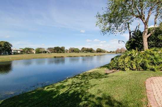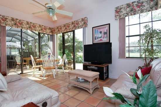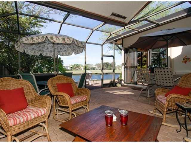 Million dollar view at GREAT price! Architecturally unique: volume ceilings, clerestory windows & skylights. Wide water lagoon & golf course views & estate homes in distance. Accordion hurricane shutters. Split bedroom floor plan & separate formal & i nformal areas. Oversized master bedroom, light oak kitchen & corian countertops, outdoor screened lanai is an outdoor living room + large open patio, hot tub stays. Very private & serene!