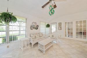 Great value in an all-age, pet-friendly, maintained community - 3rd bedroom currently used as den - $5,000 credit to replace carpet - Updated kitchen with wood cabinets, granite counter tops, crown molding, hi hat lighting and newer tile floor - Spacious living room with vaulted ceilings and a solar tube for natural light - Double French doors to large, air conditioned Florida room that expands living space - Ready for you to re-decorate - NEW electrical panel - Preferred interior lot on quiet cul-de-sac street - Great community with 2 pools - Shutters for windows and doors - Low maintenance fee which covers exterior painting, including roof cleaning/painting, water for the sprinklers, and more - convenient location - See supplement for AC square footage calculation - Buyer to verify