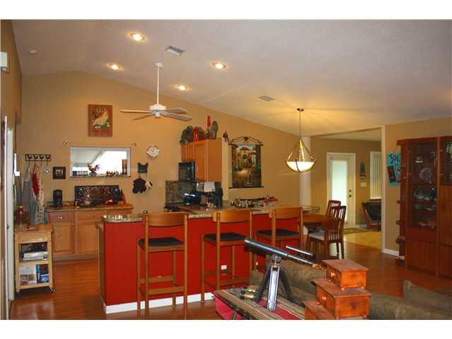 Gorgeous home completely updated! Wood laminate floors, granite counters,oak cabs, stainless new fridge, recessed lighting, alarm, new tankless water heater, new ceiling fans, Lg New Chest Freezer in garage, "Organized Living" closets, updated bathrooms, new W/D, permitted new addition: large FR! TIKI HUT w/huge bar, lights, speakers, wired for TV: perfect for South Florida living! Brick Paver rear patio, outdoor landscape fountain, privacy fence, impact windows, 2 zone A/C. Newer Roof. 2CG plus carport!