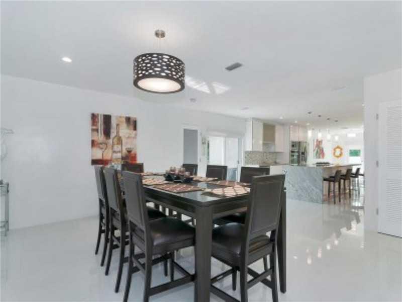 Home features an open floor plan leading to a custom built one of a kind kitchen with a 13 foot long marble top island with bountiful custom drawers and cabinets, glass tile back splash, 5 burner gas stove, built in led lighting and a built in wine cooler . Whirlpool Professional stainless steel appliances. Brand new Hurricane and Impact Resistant windows on every window and door in the house. Ultra sleek glass floor tile throughout house. House features a large Family room.